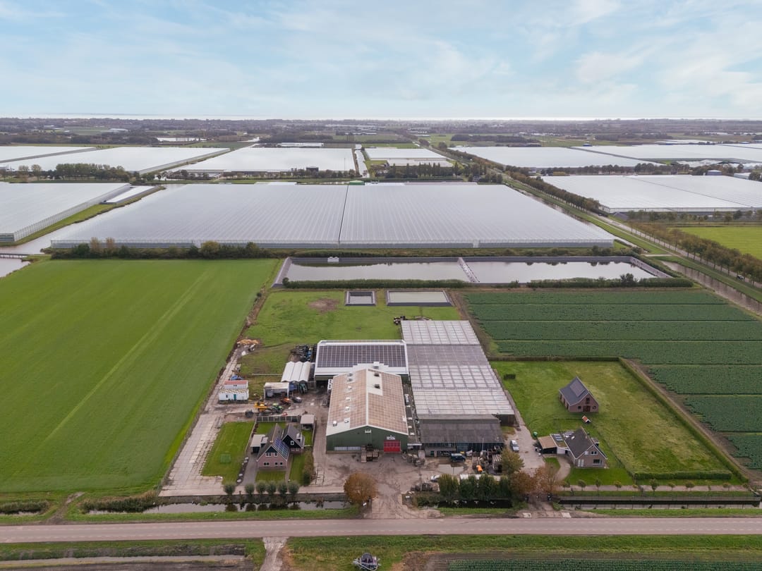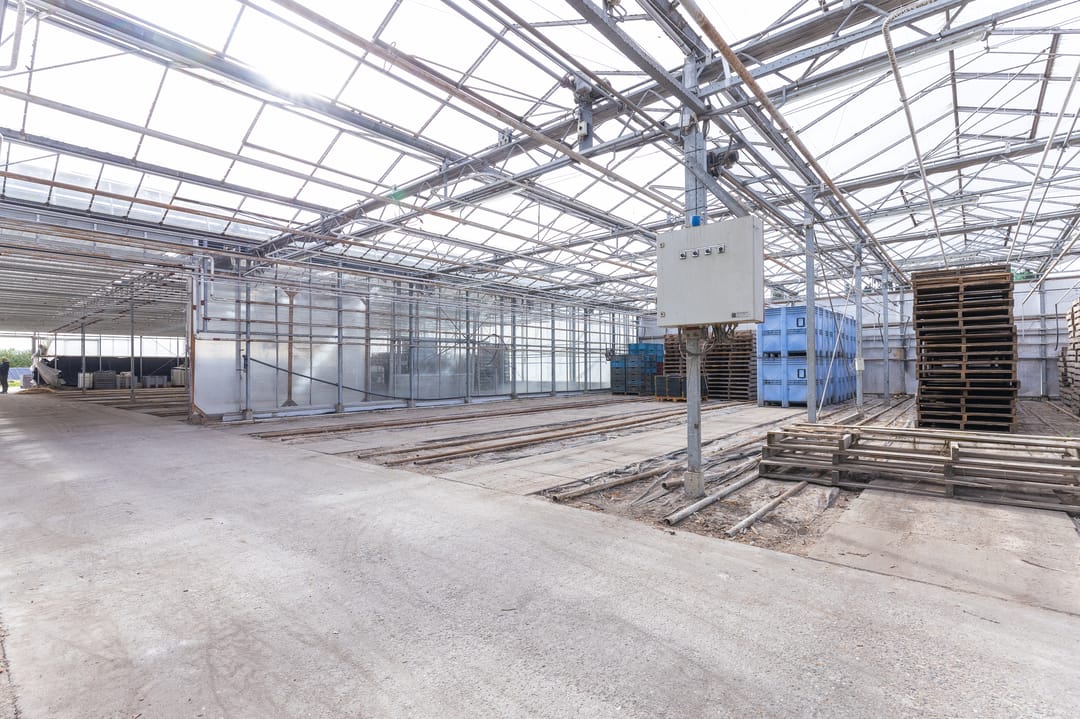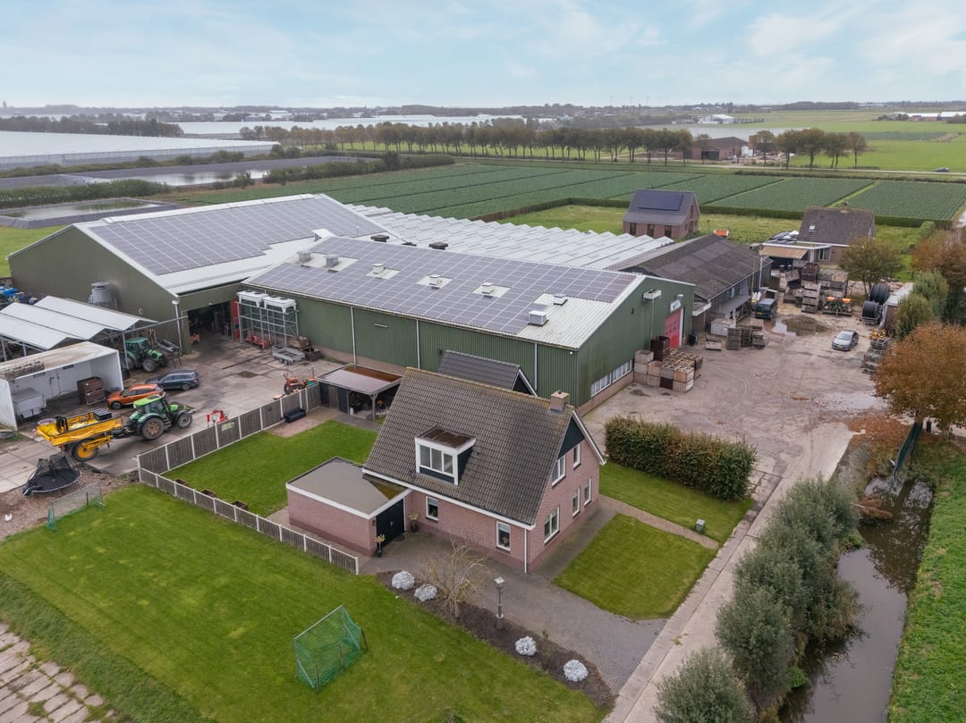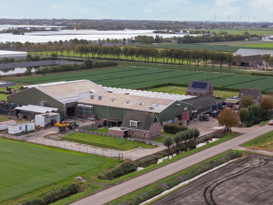Centraal gelegen AGRARISCH BEDRIJF op een totaal van 01.98.89 hectare, bestaande uit een uitgebouwde en vrijstaande bedrijfswoning, glasopstanden, een drietal schuurruimtes, celruimtes, cultuurgronden, erfverharding en een tweetal waterbassins.