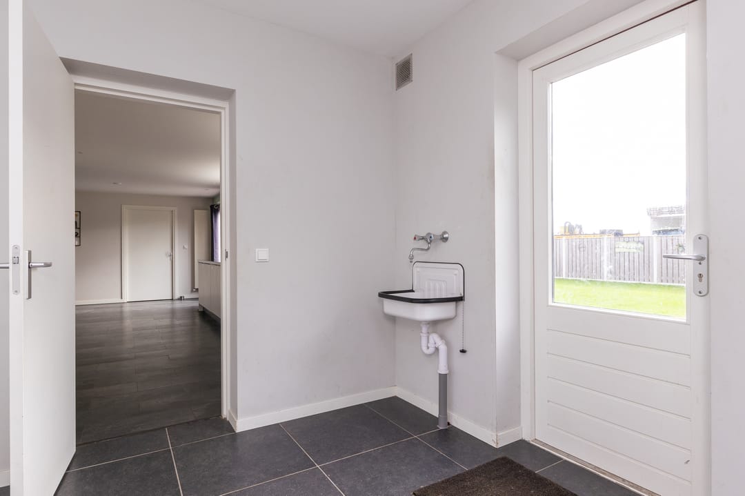 Nette en goed verzorgde bedrijfswoning met ondergrond, tuin en erf. Oorspronkelijk gebouwd in 1995 met een ruime en praktische opzet. De woning is grotendeels gerenoveerd en uitgebouwd in 2020. Binnenkomst middels de entreehal met garderobe, trapopgang en toegang tot het leefgedeelte. De riante woonkamer is voorzien van genoeg ruimte voor een of meerdere zithoeken en een grote eettafel. Dankzij de openslaande tuindeuren is via de woonkamer het terras bereikbaar. De open keuken is tijdens de renovatie volledig gemoderniseerd en is voorzien van alle hedendaagse gemakken. De bijkeuken is voorzien van een witgoedaansluiting, wasbak, kastruimte en de achterdeur. De garage is geïsoleerd en uitgerust met kantoorruimte. Op de verdieping een ruime overloop, een 4-tal goede slaapkamers en een badkamer uitgerust met douche, toilet, ligbad en een dubbel wastafelmeubel. Via een vlizotrap is de bergzolder bereikbaar.