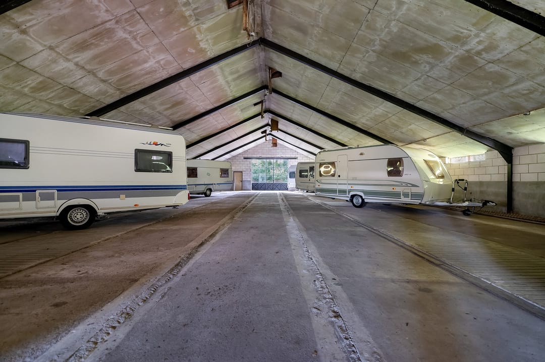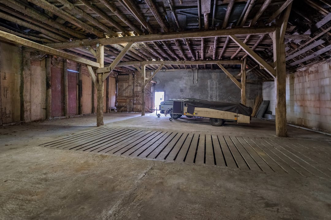 De schuren/stalling zijn geschikt voor opslag, werkruimtes, paardenstallen, of zoals het huidige gebruik caravanstalling.