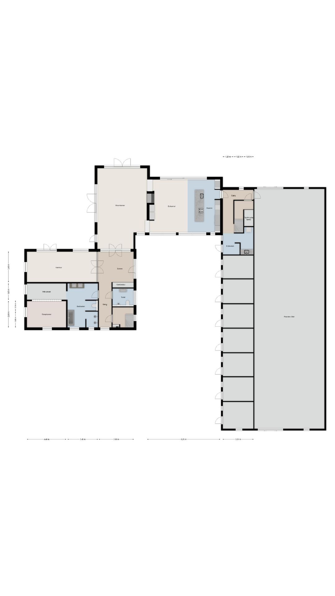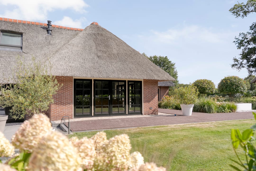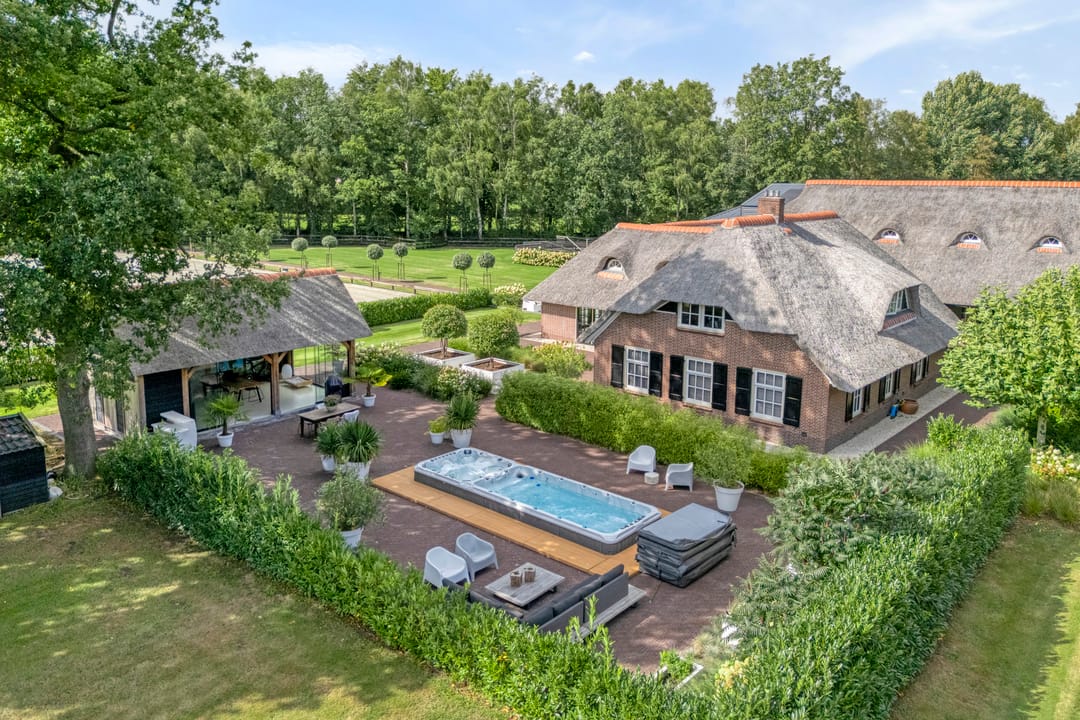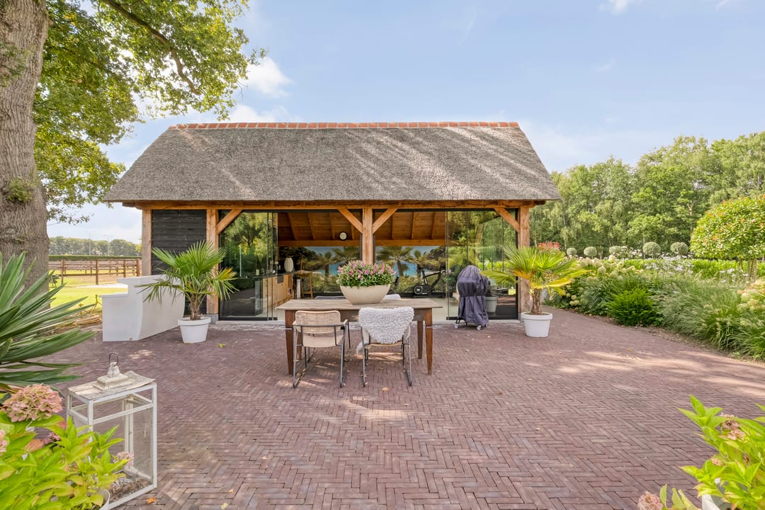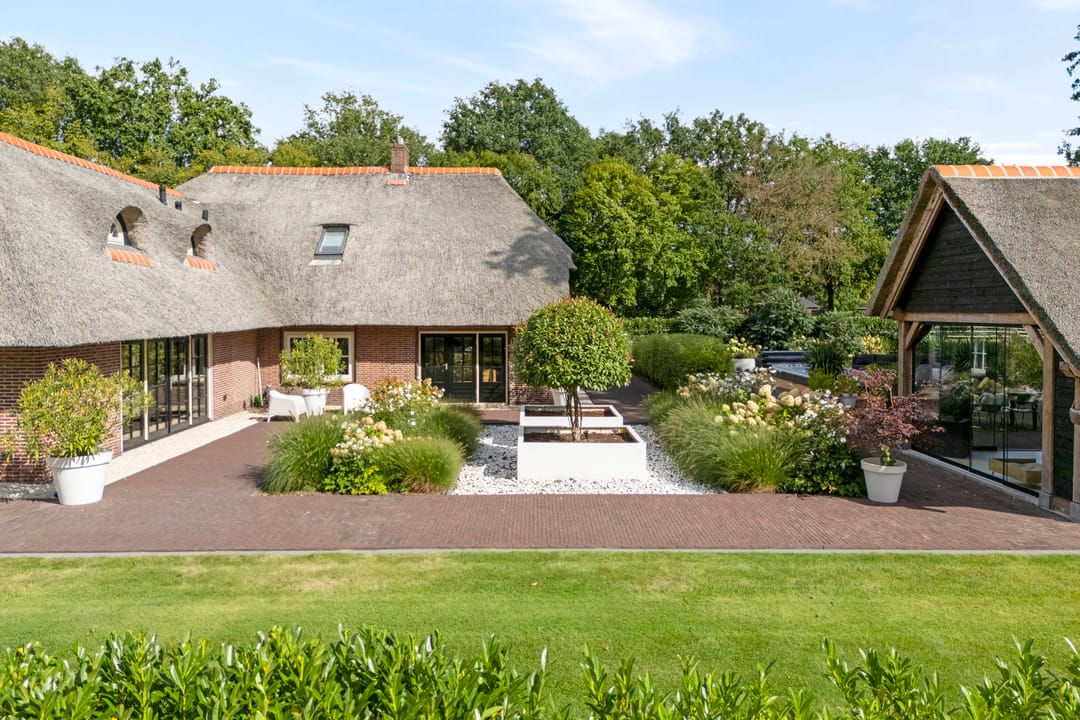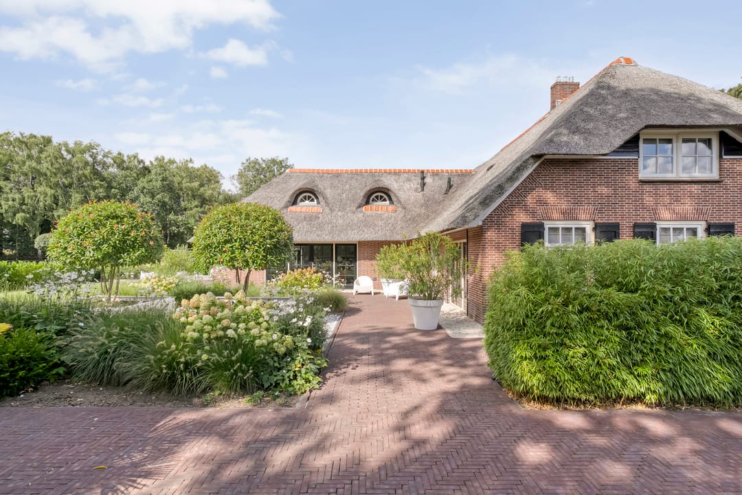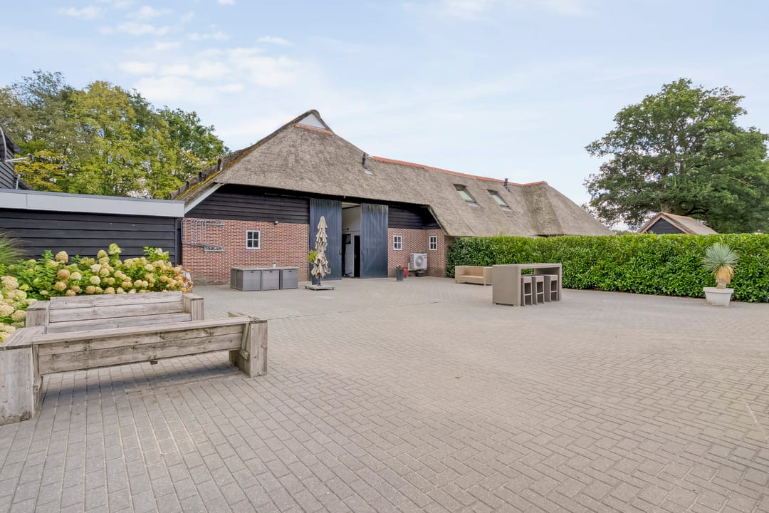Het geheel bestaat uit een sfeervol en riet gedekt Landhuis met eveneens riet gedekt stalgebouw waarin 11 mooie boxen, waarvan 8 met buitenluik. Verder een zadelkamer en een fraaie rijhal waarvan de rijbaan afm. 20 x 40 m met een goede bodem en een gezellige foyer, keuken en toilet groep. Tevens is er een stapmolen aanwezig, paddocks en een grote buiten rijbaan met eb- en vloed bodem.