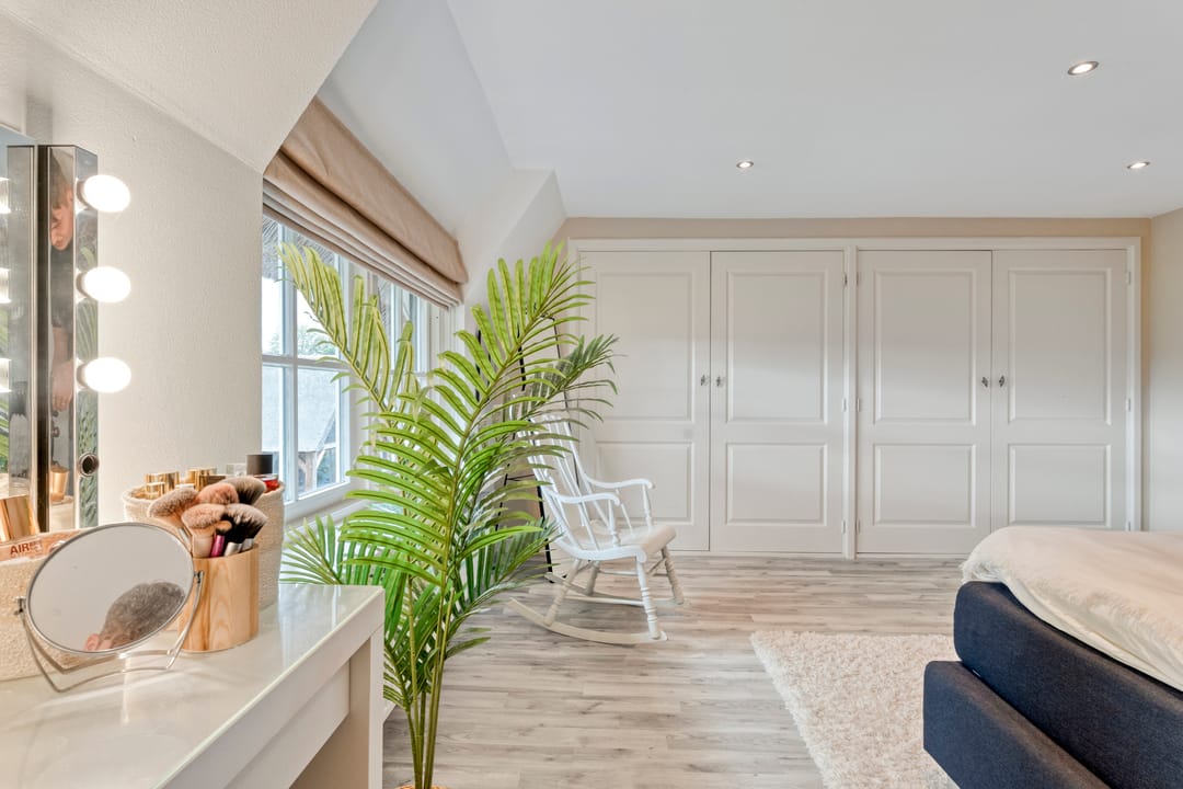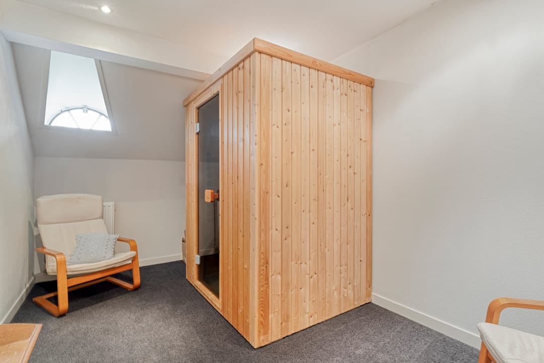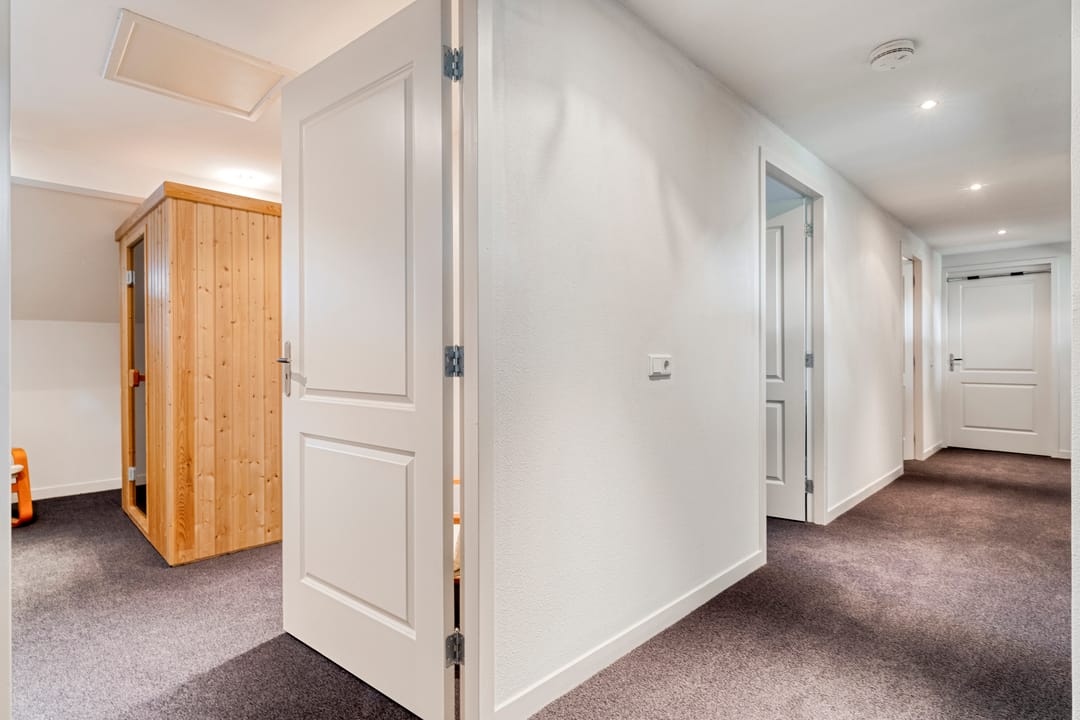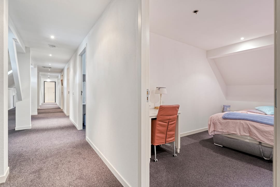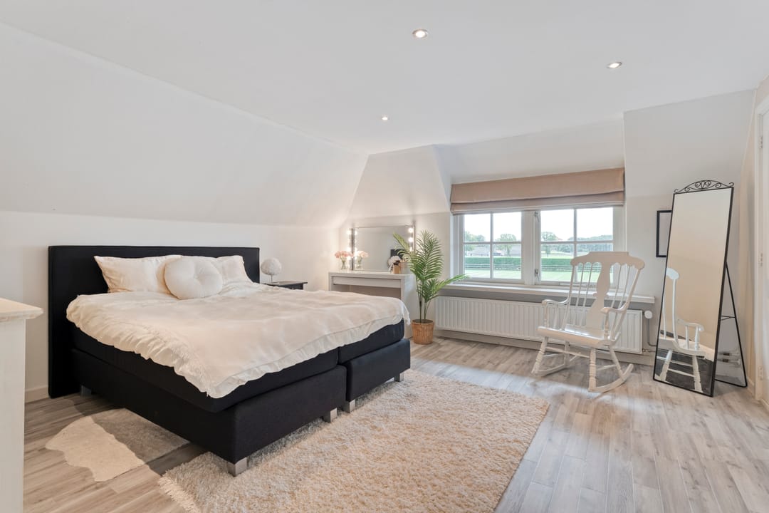 Daarnaast zijn er nog 5 mooie slaapkamers aanwezig welke uitstekend geschikt zijn als verblijfsruimte, een relaxruimte met infraroodsauna en grote opbergruimte. Deze vertrekken bevinden zich boven de stalruimte en zijn ook via de stallen bereikbaar. Zeer geschikt voor bijv. medewerkers of logies.