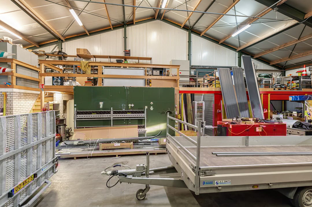 De (fruit)loods is gebouwd op een betonnen onderheide vloer met een draagkracht van 2.500 kg/m2. De gevels zijn grotendeels voorzien van een gemetselde borstwering en geïsoleerde sandwichpanelen. De geïsoleerde zadelkap is voorzien van asbestvrije golfplaten. De loods is momenteel in tweeën gedeeld. Het gedeelte dat aan de woning grenst is voorzien van inpandige kantoor-/kantineruimte en toegankelijk door middel van 2 overheaddeuren en een loopdeur. De andere helft is toegankelijk via 3 overheaddeuren en een loopdeur. De totale oppervlakte van deze loods bedraagt circa 700 m2 (23x30,40 m).