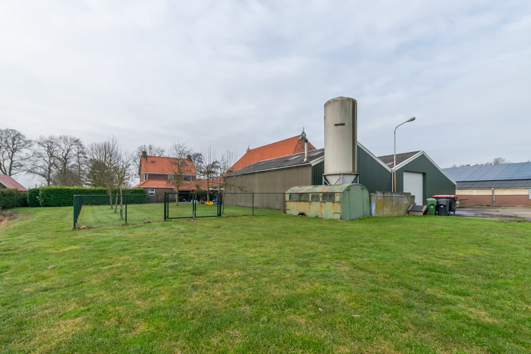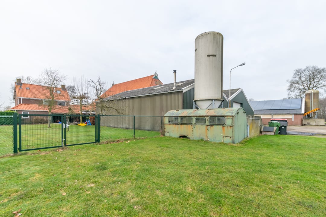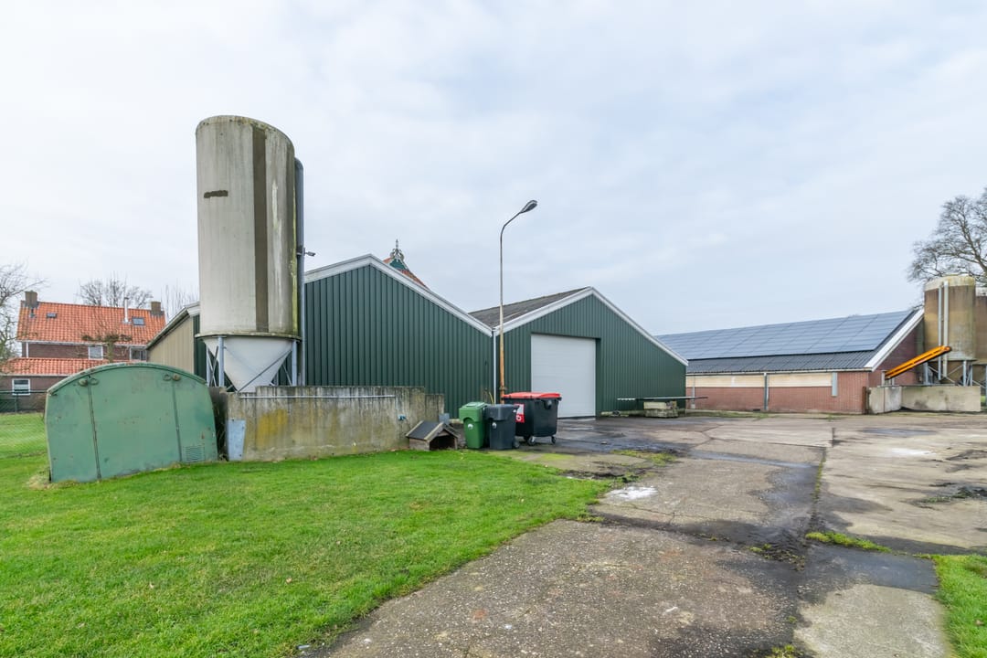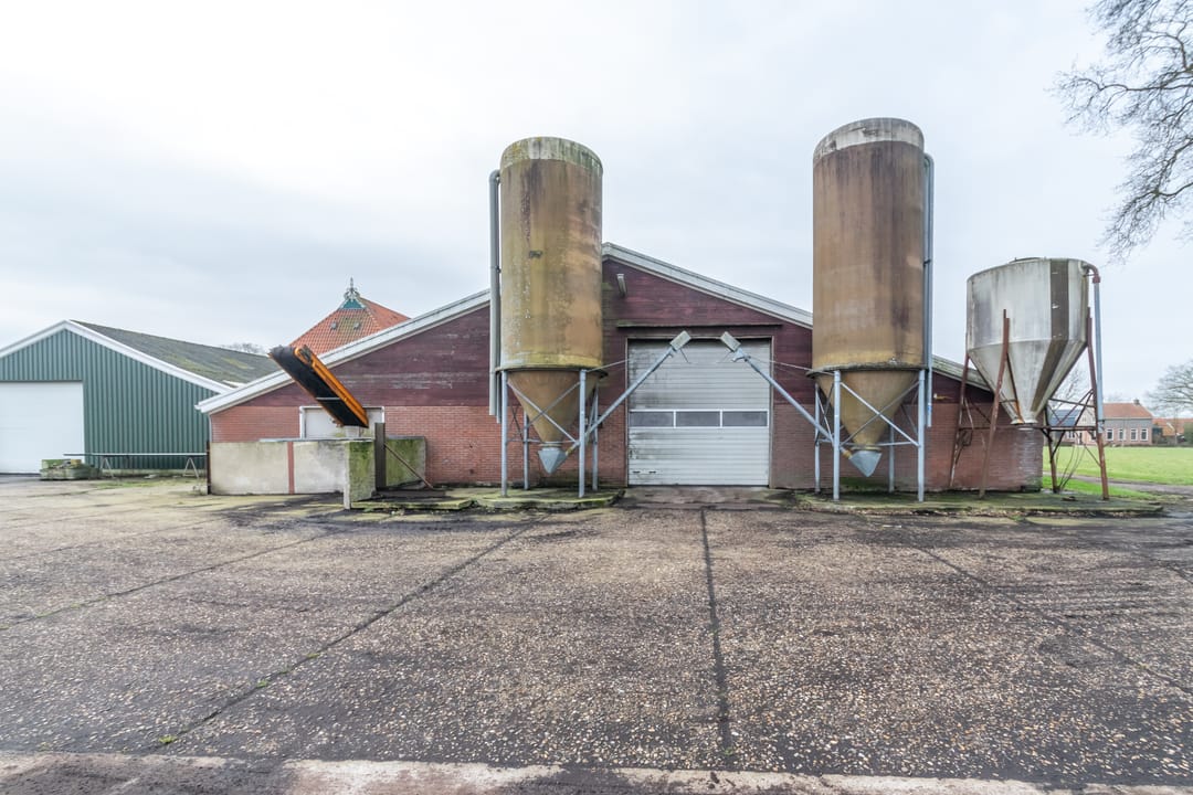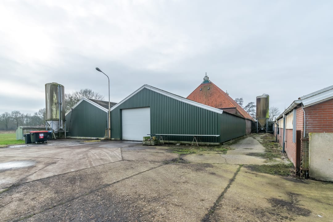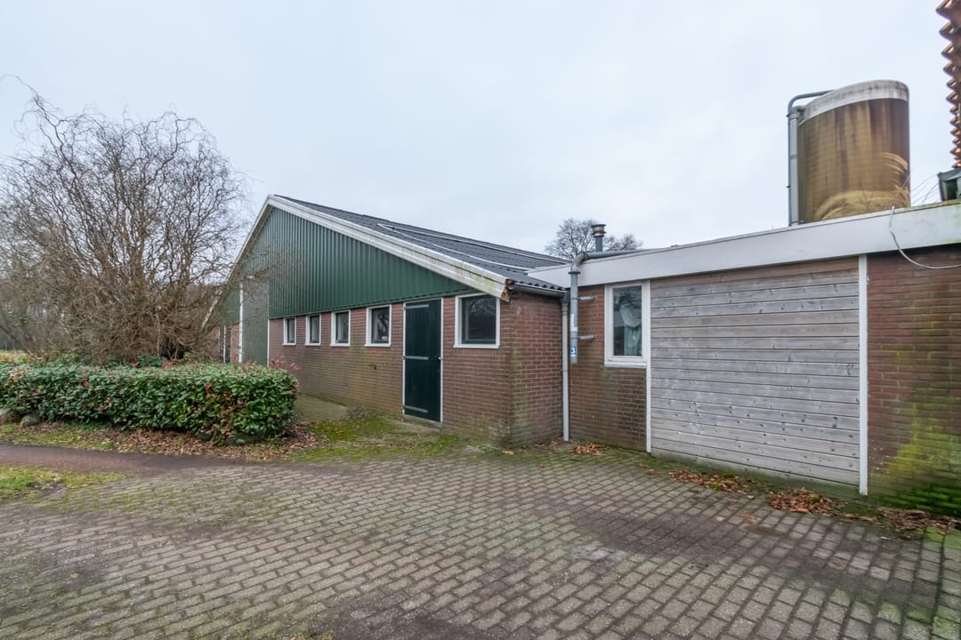 Aan de woning zijn diverse bedrijfsgebouwen gekoppeld met een totale oppervlakte van circa 1.364 m² op de begane grond, aangevuld met een zolderverdieping van circa 375 m² met een afmeting van circa 25 x 15 meter. De bebouwing bestaat onder meer uit een ligboxenstal, oorspronkelijk gebouwd in de jaren zeventig, met een afmeting van circa 31 x 20 meter en een goothoogte van circa 2,15 meter, alsmede gekoppelde groene schuren aan de achterzijde met een gezamenlijke oppervlakte van circa 374 m².