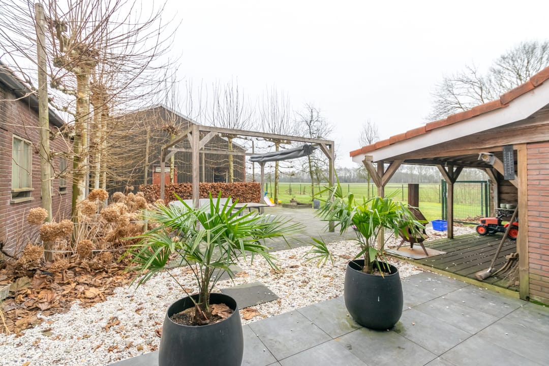 Het erf is ruim en overzichtelijk opgezet. De situering en perceelgrootte zorgen voor een vrij en landelijk karakter met voldoende ruimte rondom de bebouwing.