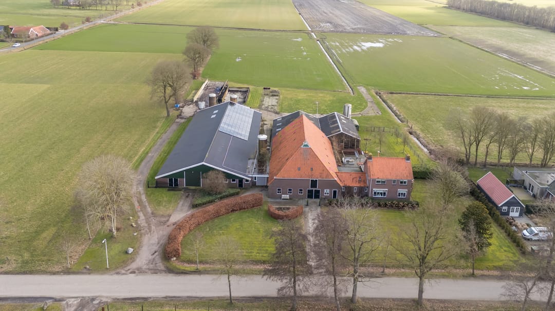 Aan het Zuideinde in Fochteloo ligt deze vrij gelegen woonboerderij met aangrenzende bedrijfsgebouwen, gesitueerd op een perceel van circa 8.500 m². De locatie biedt een prettige combinatie van vrij wonen en werken op één erf binnen een agrarische setting.