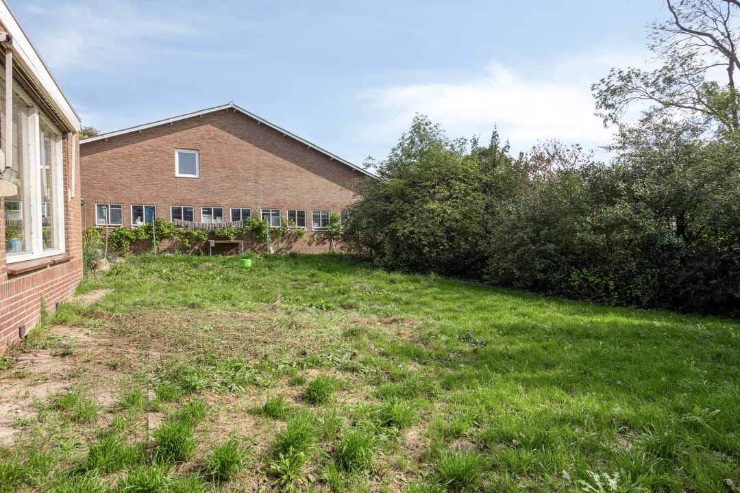 • het dak is gedekt met asbesthoudende golfplaten (1981) op gordingen van houten liggend op vrij dragende stalen spanten.