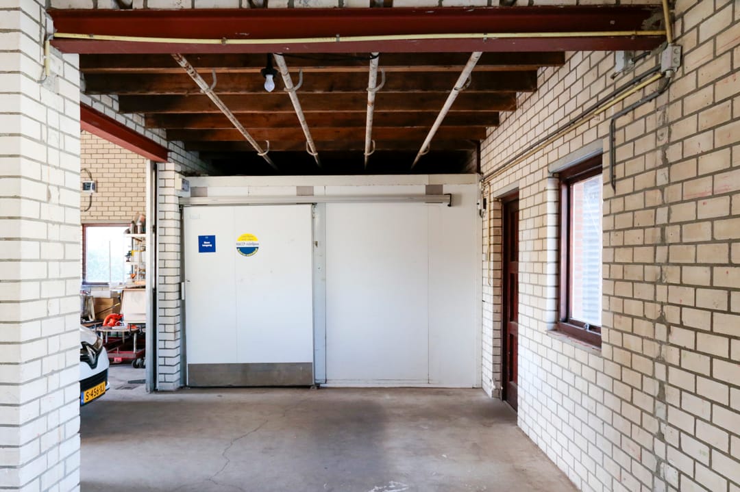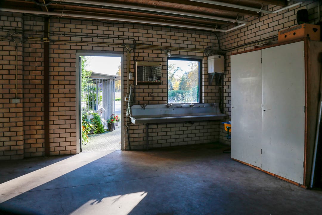 In de loods bevindt zich de koelcel en een handenwasgelegenheid, drinkwatervoorziening, aansluiting telefoon, afsluiter elektra en toilet