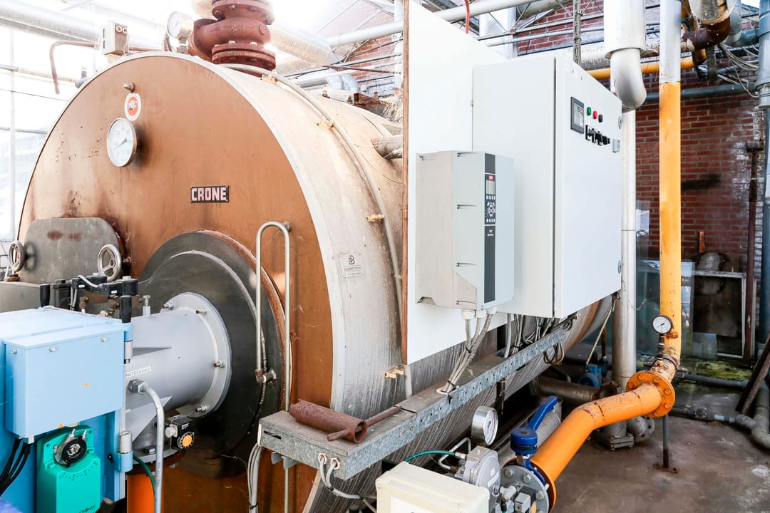 - Ketel van het merk Crone, type CM12 en bouwjaar 1989. Vlampijpen zijn vervangen in 2011.