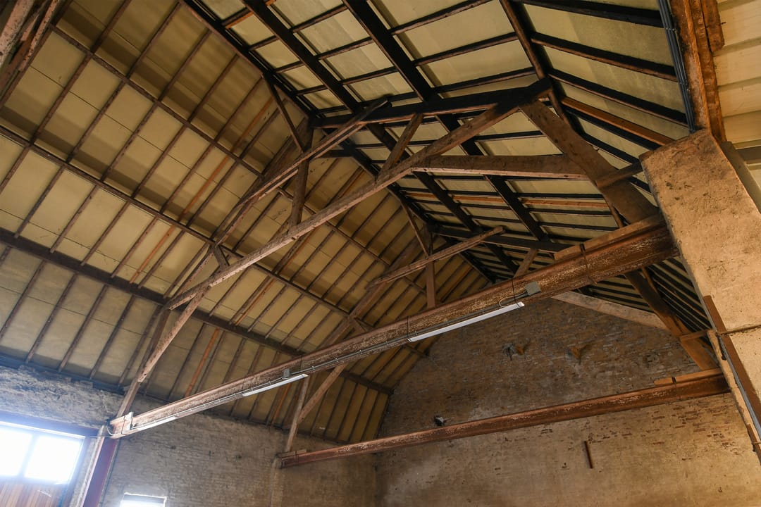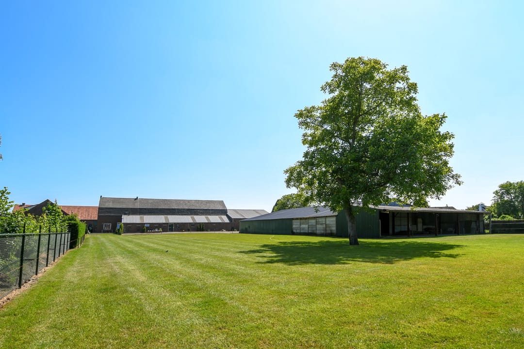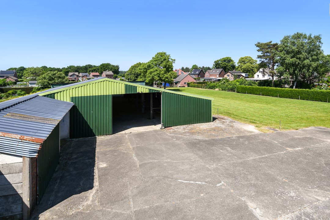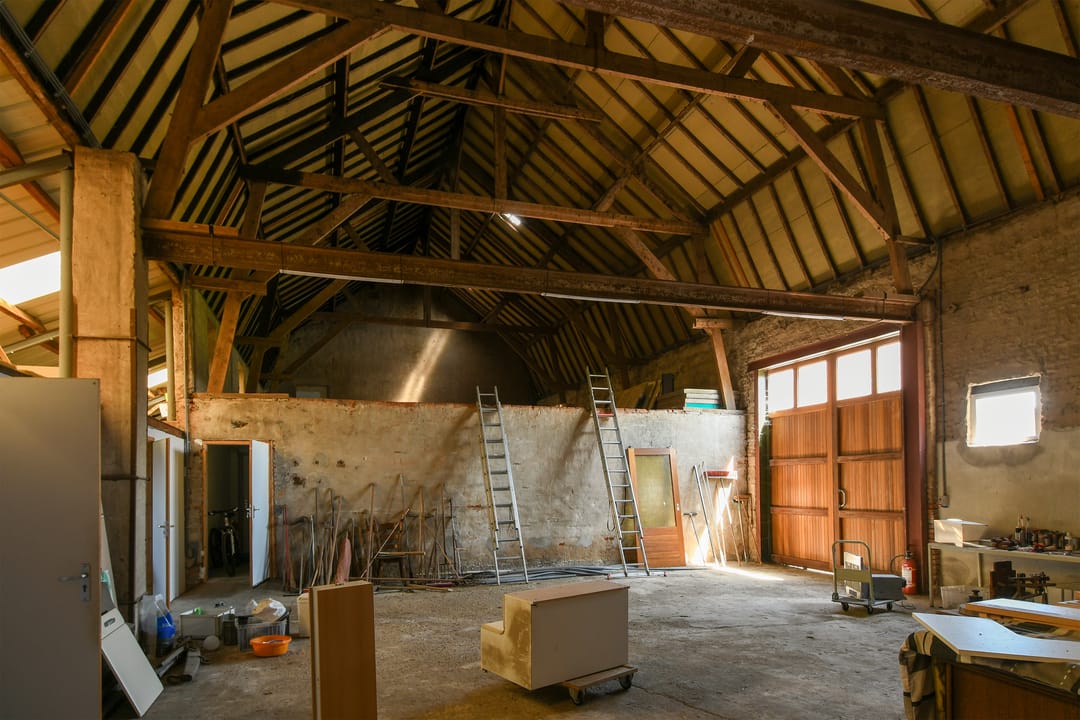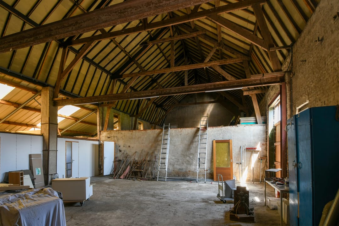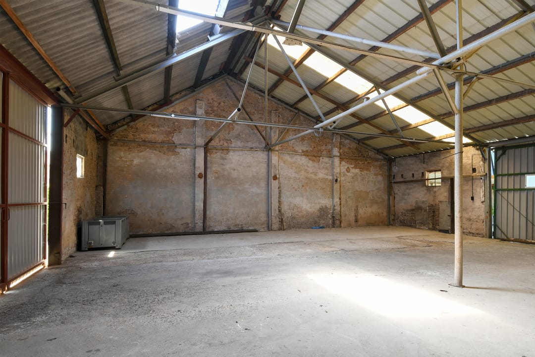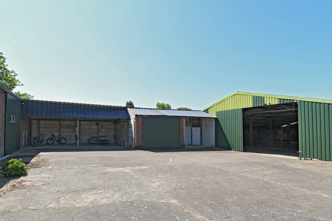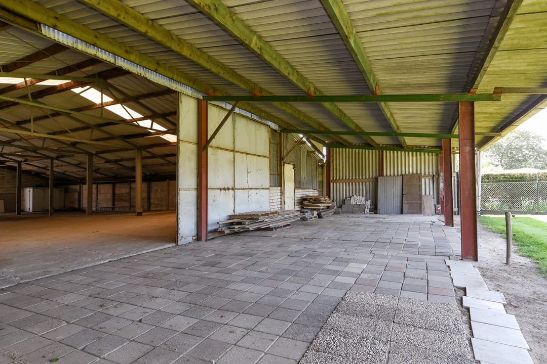 De schuur is voorzien van een betonvloer, houtendraagconstructie en stalen balken. He dak is gedekt met asbest vrije golfplaten en asbesthoudend dakbeschot.