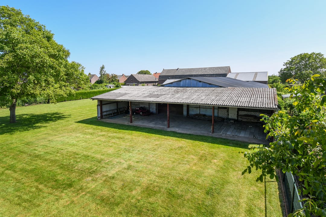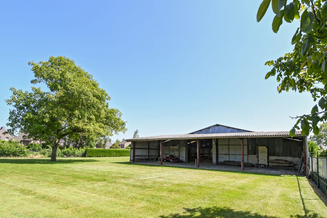 Achter de loods staat een afhang, het dak is voorzien van asbest vrije golfplaten.