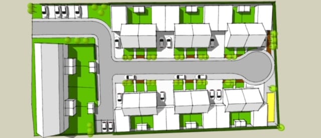 12 woningen (2-onder-1-kap) op het resterende achterliggende perceel met een perceelsoppervlakte van ca. 180 m².