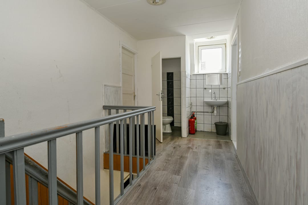 Overloop met toegang tot 4 slaapkamers, toilet en wasbak.