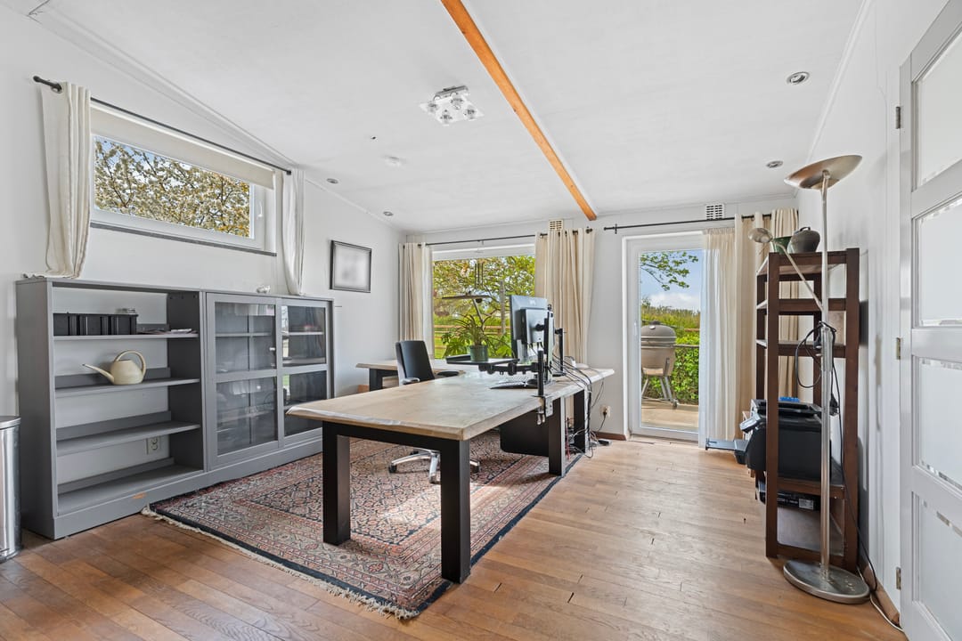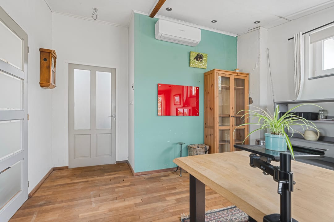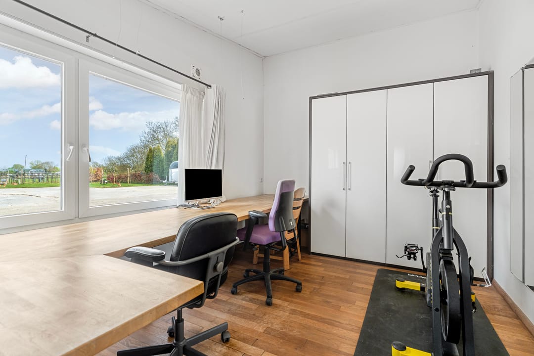 De woning beschikt daarnaast over een ruime aanbouw die voor veel extra mogelijkheden zorgt. Deze functioneert bijna als een tweede wooneenheid, met een bijkeuken voorzien van keukenblok, een deur naar de tuin, een multifunctionele ruimte en een kantoorruimte die ook uitstekend als slaapkamer/kantoor kan dienen. Aansluitend vind je een compacte badkamer met douche, wastafel en toilet. Ideaal voor werken aan huis, praktijkruimte of hobbyruimte.