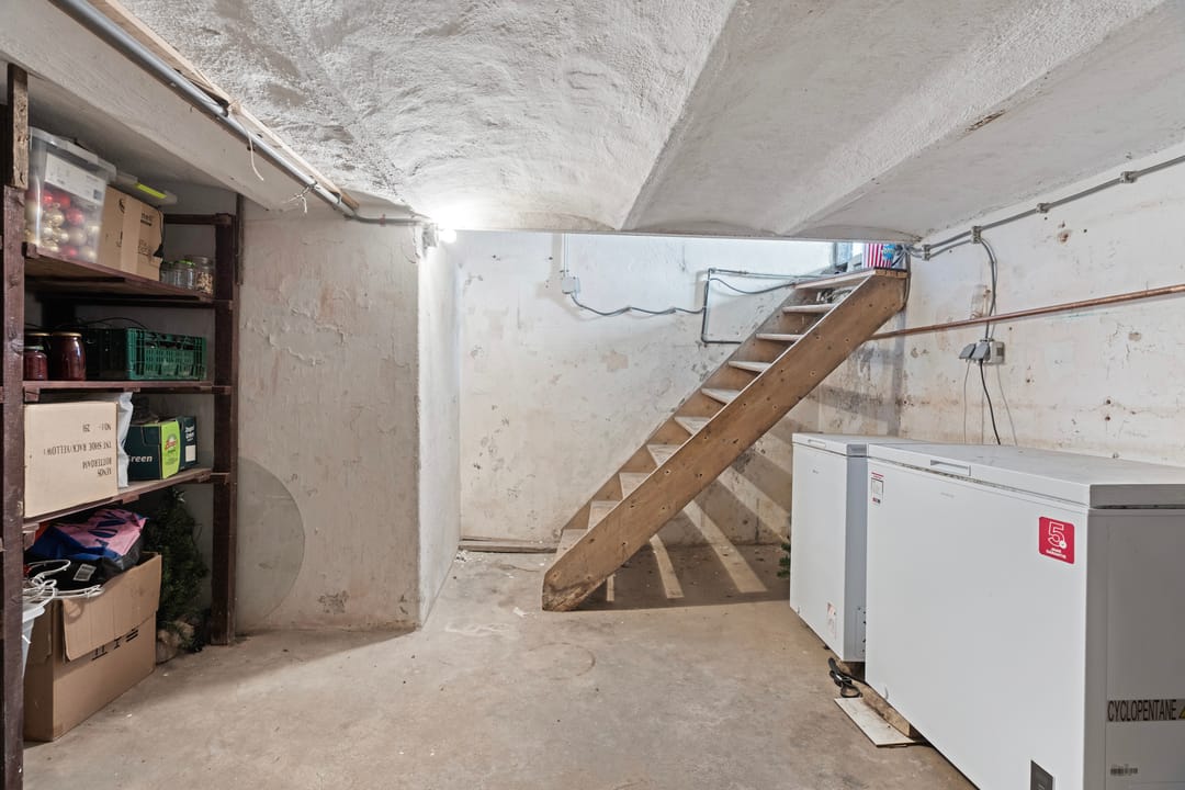 De vliering biedt praktische bergruimte en de kelder is ideaal voor provisie en opslag.