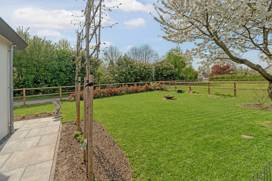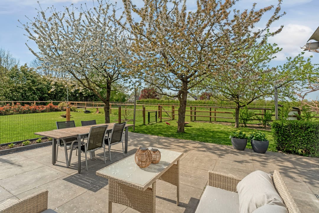 Hier begint het echte genieten. Het erf is ruim opgezet en vormt een prachtig samenspel van wonen, tuin en agrarisch gebruik. Rondom de woning ligt een verzorgde tuin met gazon, terrassen en mooi volgroeide bomen. Of je nu wilt ontspannen in de zon, uitgebreid wilt tafelen of simpelweg wilt genieten van de rust: hier kan het allemaal. Het terras aan de zijkant van de woning is netjes aangelegd en gelegen op het westen, heerlijk genieten in het avondzonnetje met veel privacy.