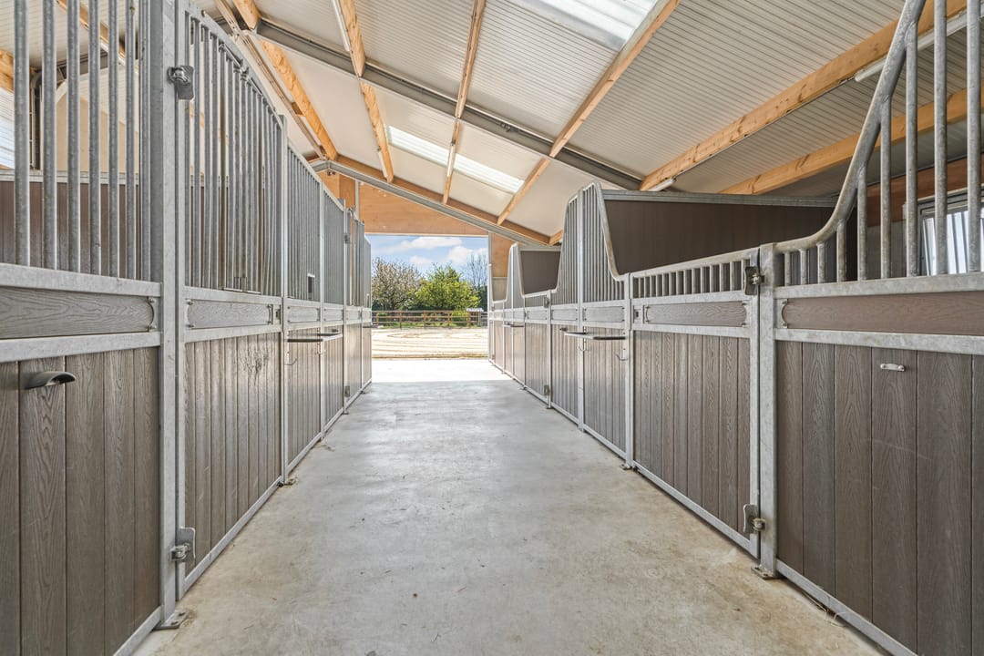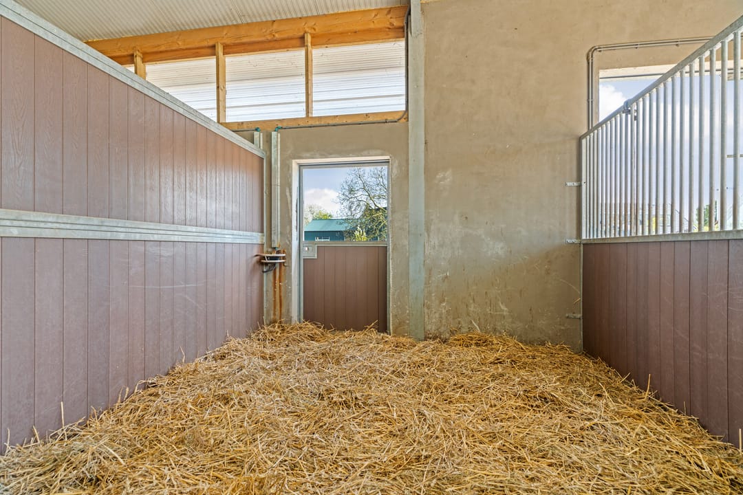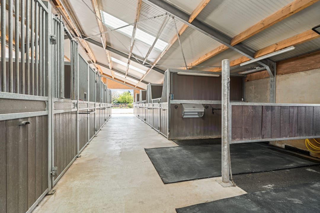 Het geïsoleerde dak zorgt voor een aangenaam stalklimaat: vorstvrij in de winter en relatief koel in de zomer. De stal beschikt over een ruime gang, veel lichtinval en goede ventilatie: 6 boxen zijn voorzien van een buitendeur en 1 box beschikt over een raam.