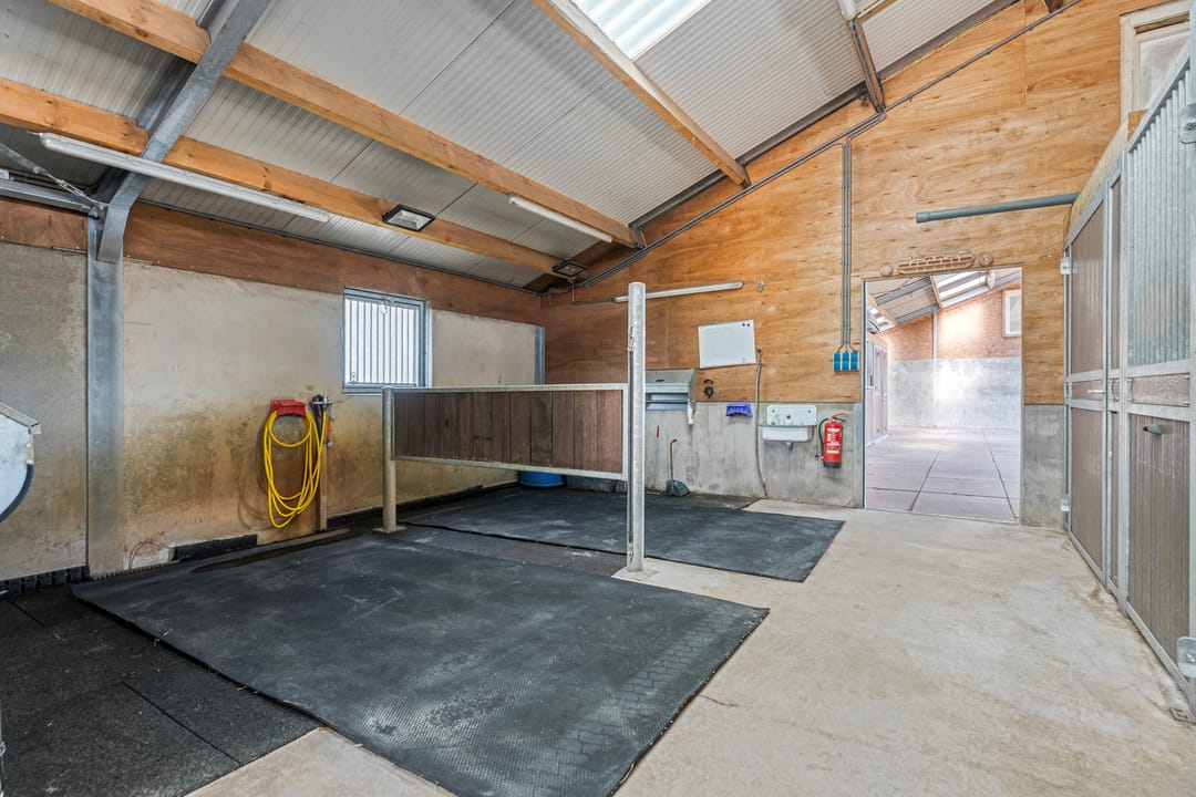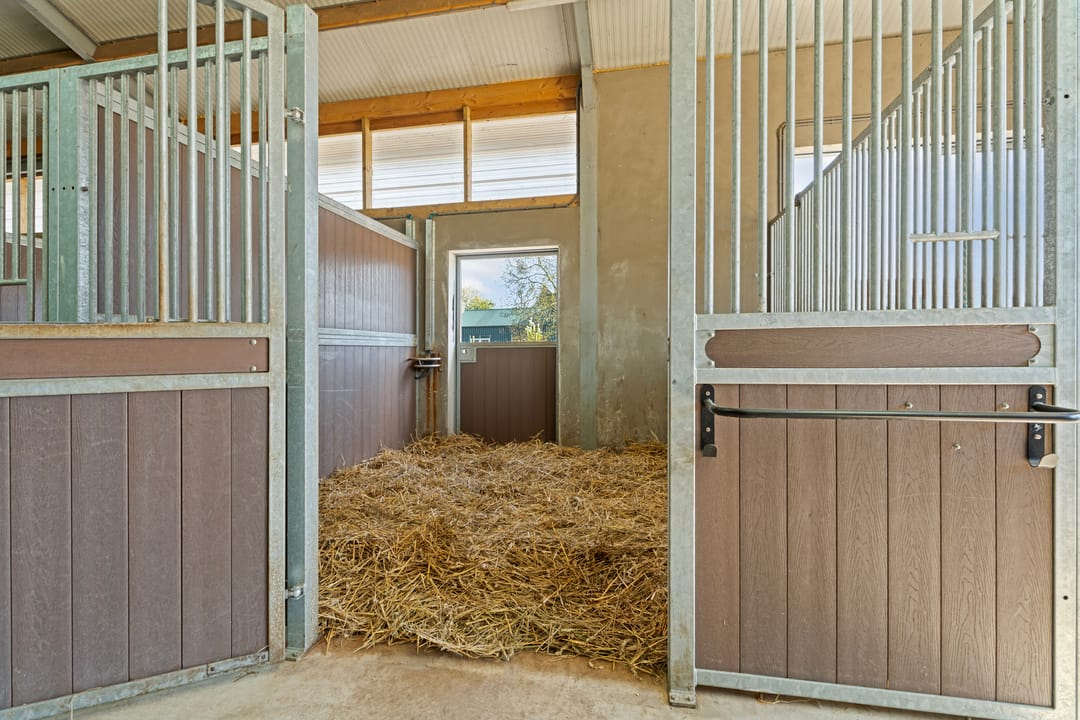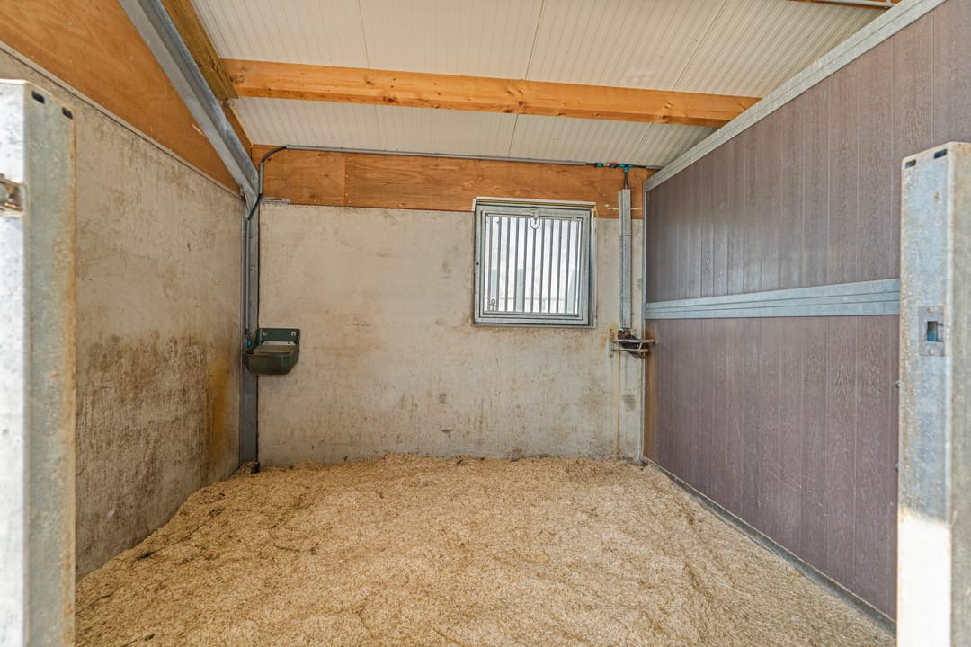 De stal is degelijk gebouwd en functioneel ingedeeld met in totaal 8 paardenboxen van Geert & Henk trading. Het betreft 4 ruime Monaco boxen (ca. 3,55 x 3,5 m) en 4 Schengen boxen, waarvan 3 van ca. 3,5 x 3 m en 1 kleinere van ca. 3,1 x 3 m. Alle boxen zijn voorzien van rubberen stalmatten voor optimaal comfort en gewrichtsontlasting, evenals automatische drinkbakken met een omloopsysteem ter voorkoming van bevriezing.