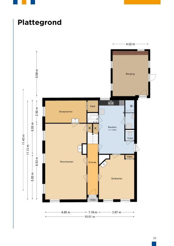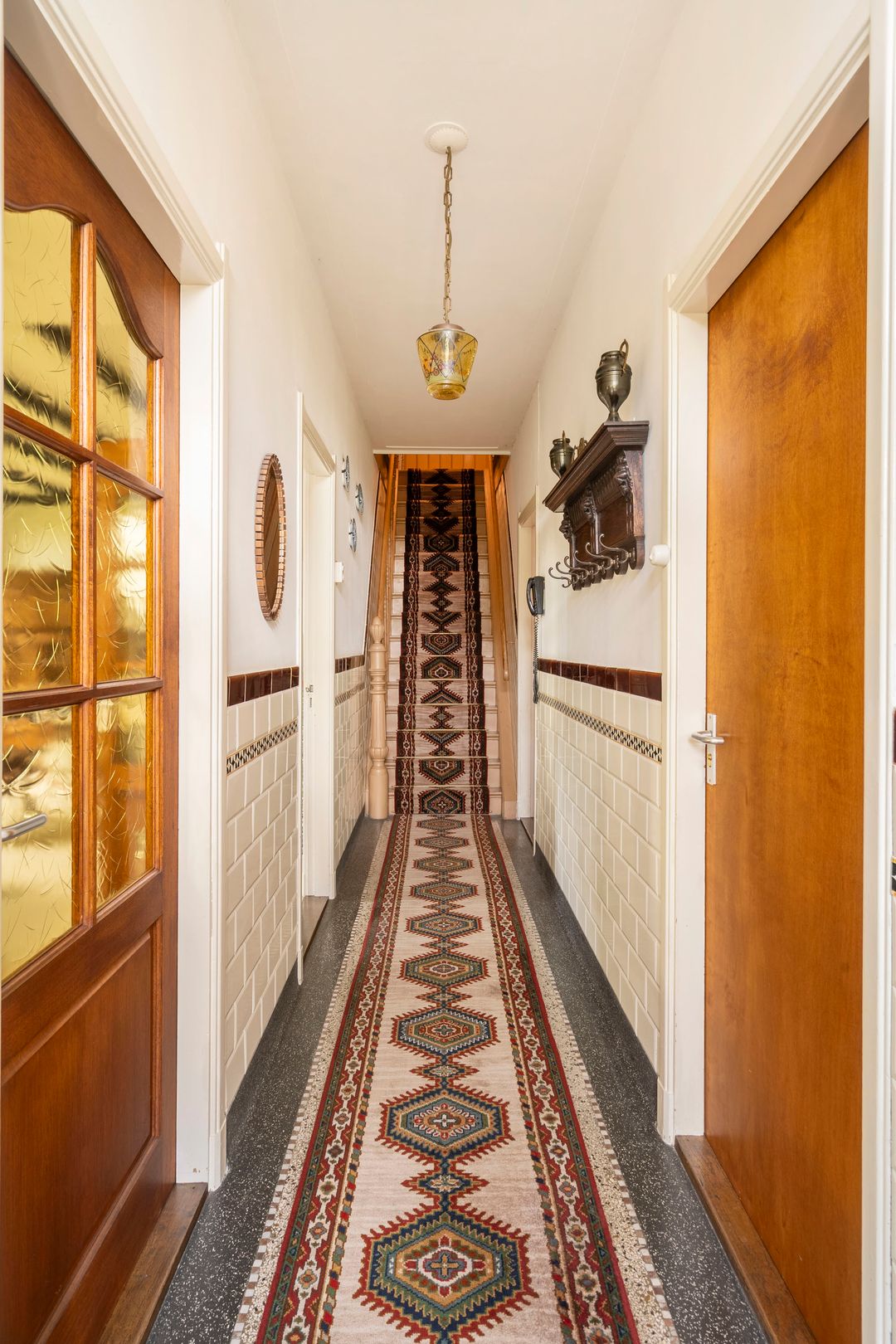 Op de begane grond bevinden zich een hal met een originele terrazzovloer, een woonkamer, eetkamer, keuken, toilet, badkamer met douche en een slaapkamer. Vanuit de keuken is de kelder bereikbaar waarin zich nog de originele pekelbakken en kaasplanken bevinden van de vroegere kaasmakerij. De eerste verdieping beschikt over een ruime voorzolder en twee slaapkamers. De onderhoudstoestand* van de woning is redelijk tot goed. Rondom de woning ligt een ruime siertuin met een bloementuin.