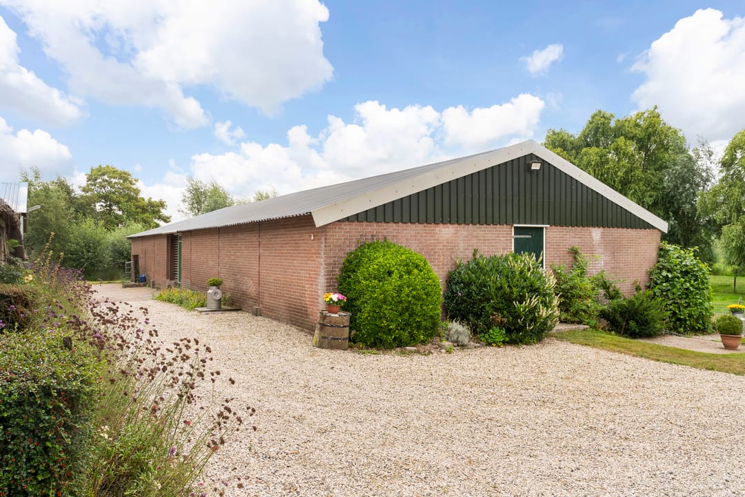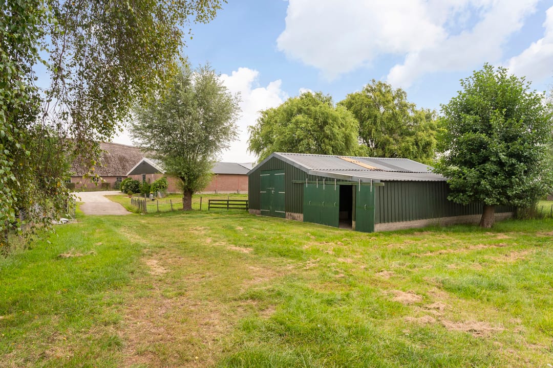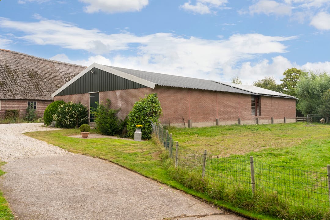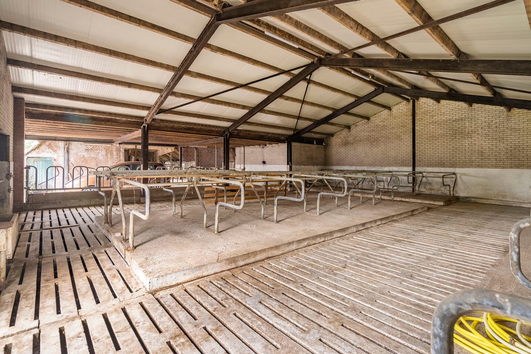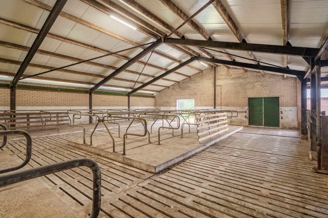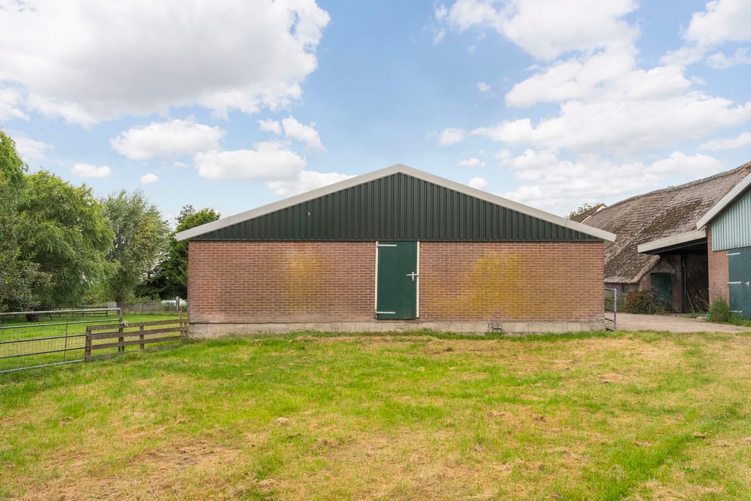 Aan de woning bevindt zich de voormalige veestalling die thans niet meer in gebruik is. Naar schatting is dit gebouw ongeveer 300 jaar oud. Het is opgetrokken uit steensmetselwerk en voorzien van een rietgedekte kap. Deze stal is via een tussenbouw verbonden aan de voormalige ligboxenstal (1985), opgetrokken uit spouwmetselwerk. De kap is gedekt met sandwichpanelen.