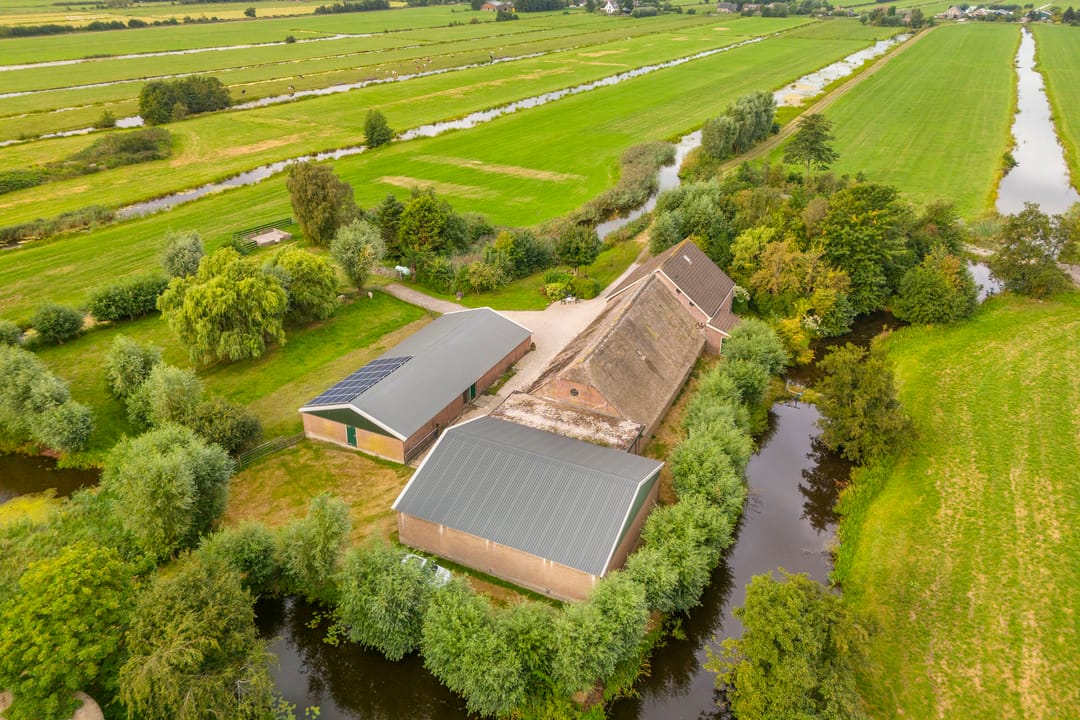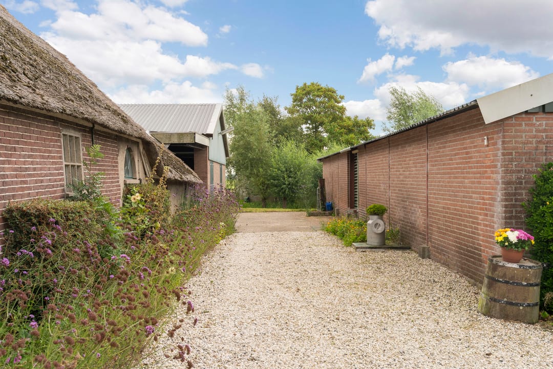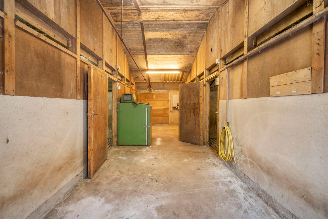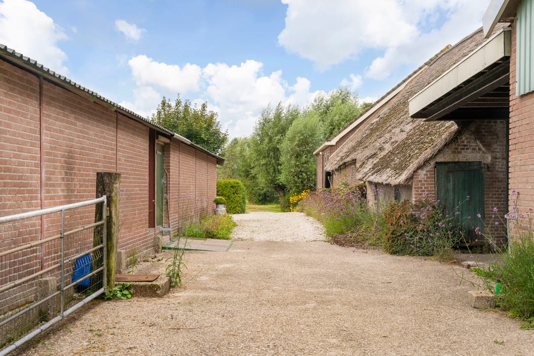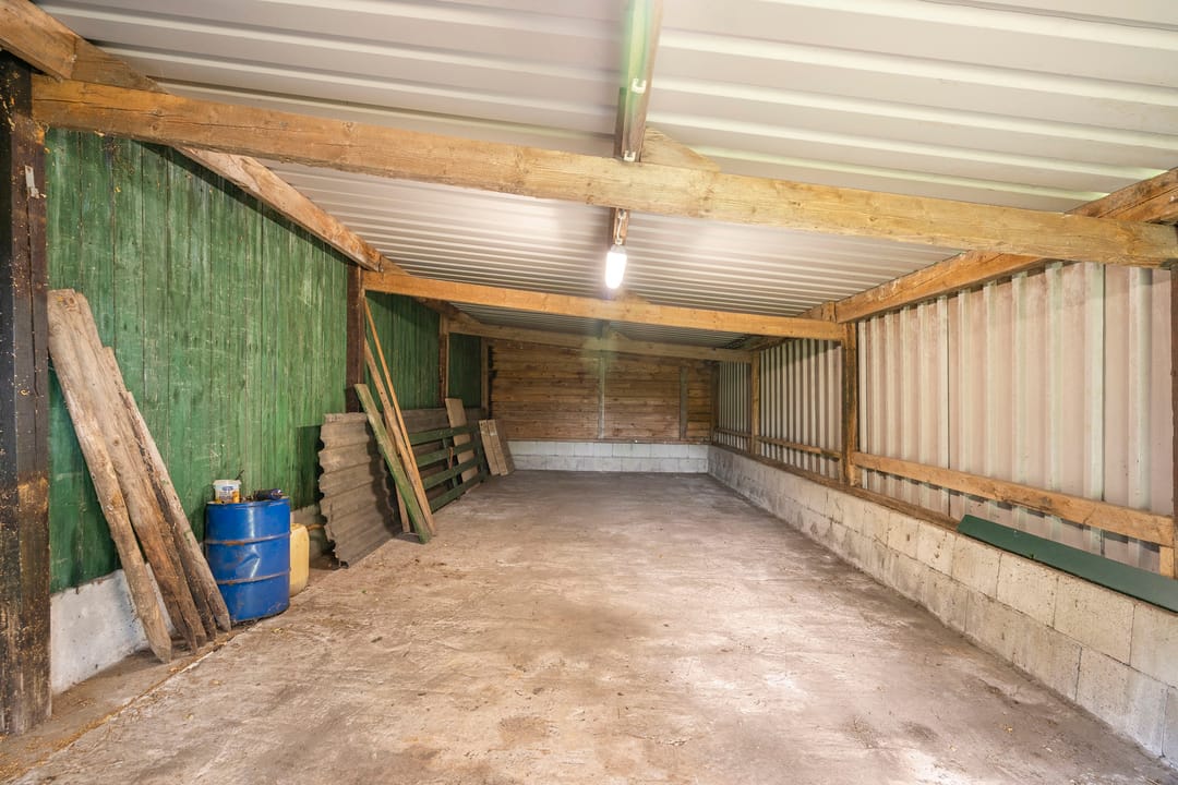 Aan de woning bevindt zich de voormalige veestalling die thans niet meer in gebruik is. Naar schatting is dit gebouw ongeveer 300 jaar oud. Het is opgetrokken uit steensmetselwerk en voorzien van een rietgedekte kap. Deze stal is via een tussenbouw verbonden aan de voormalige ligboxenstal (1985), opgetrokken uit spouwmetselwerk. De kap is gedekt met sandwichpanelen.