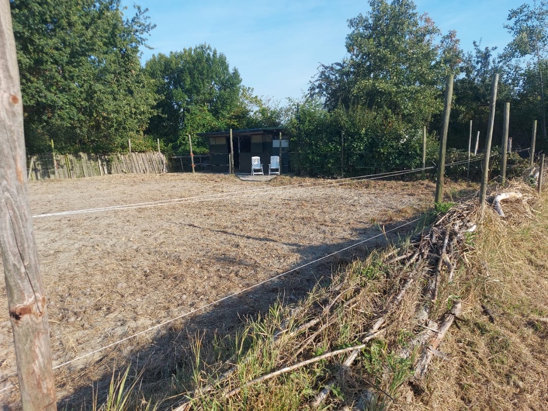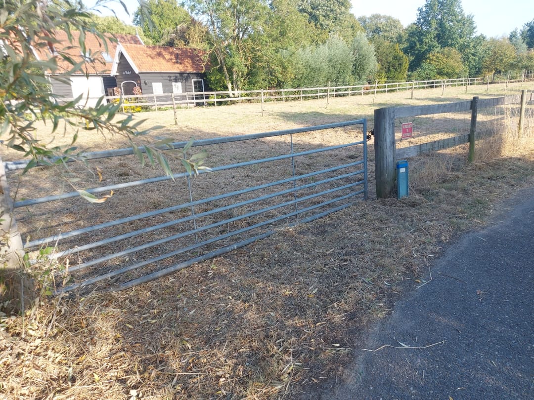 De weide heeft twee afsluitbare hekken en een 20 m x 40 m paardenbak v.v. drainage, welke uitkomt op de oostelijke sloot. De weide is in vier vakken verdeeld en is grotendeels luxueus omrand met hardhout. Het perceel is gemiddeld 25 m breed x 120 m lang. Aan de voorzijde van de weide zijn aansluitingen op de nutsvoorzieningen water en elektriciteit.