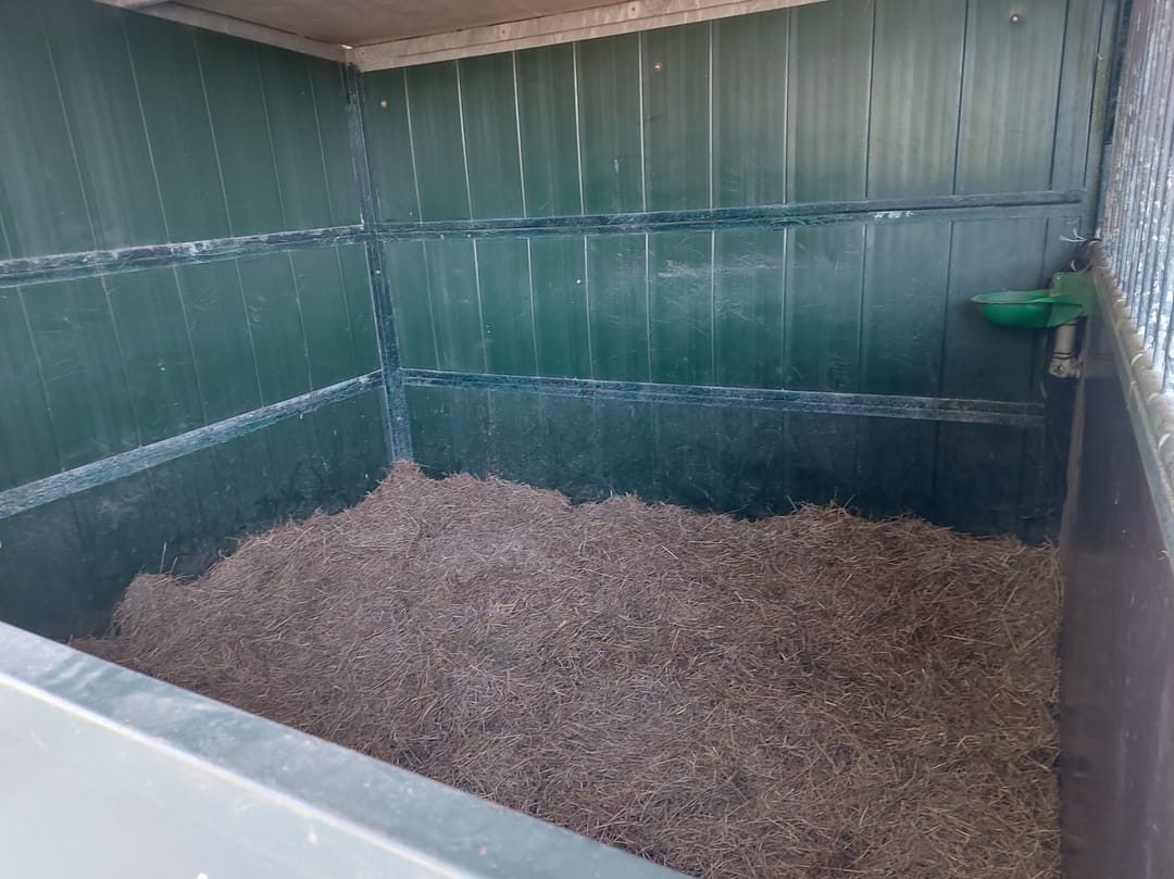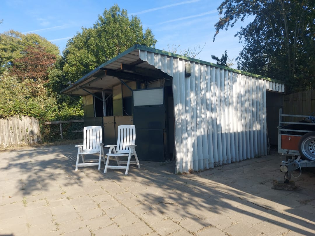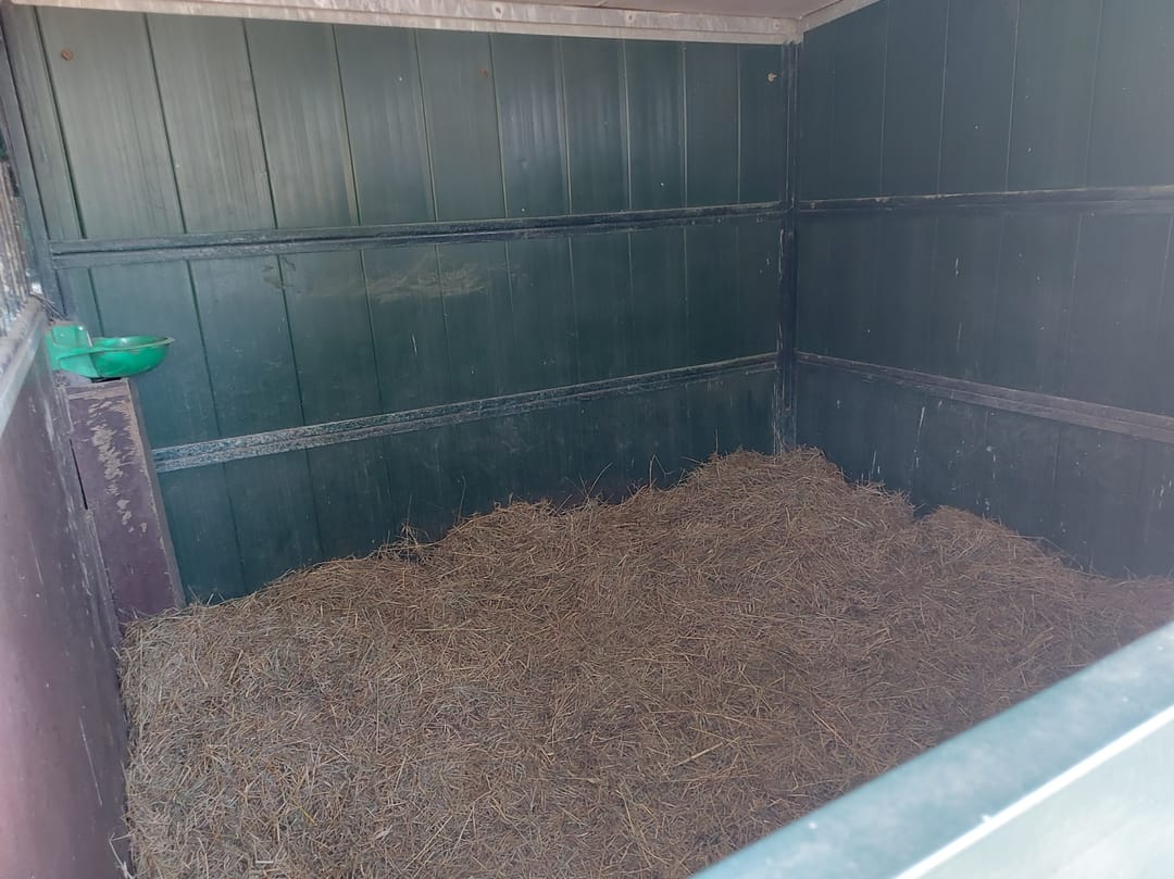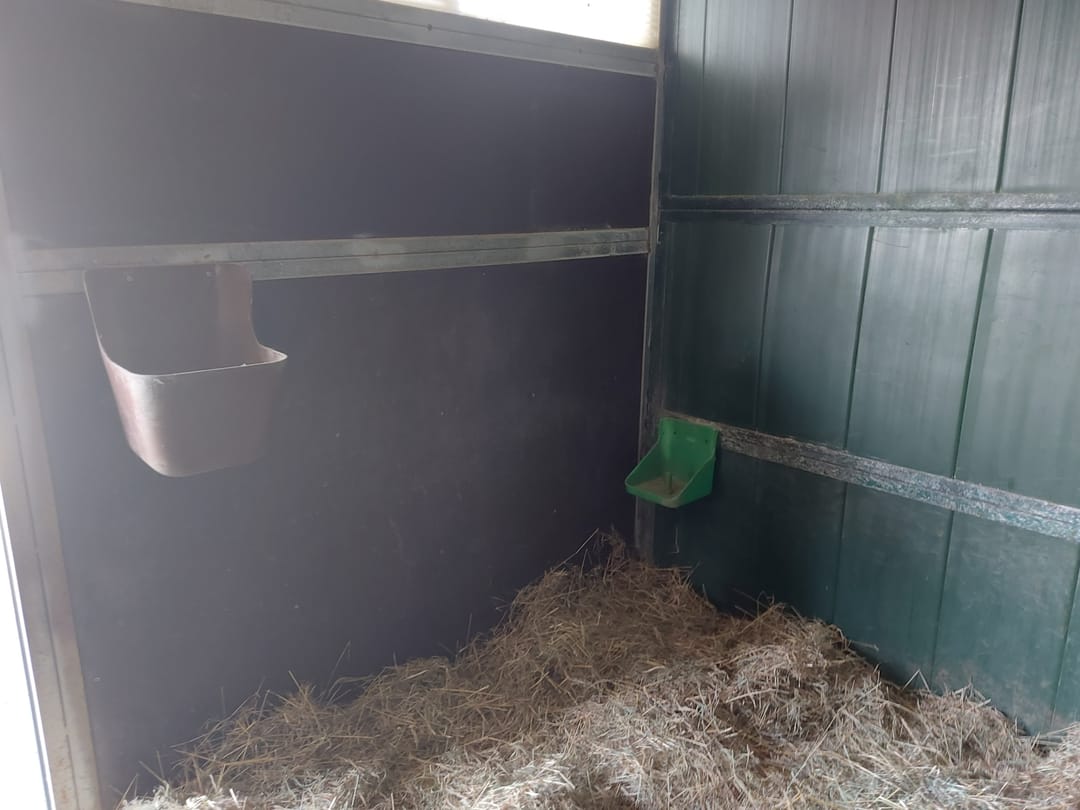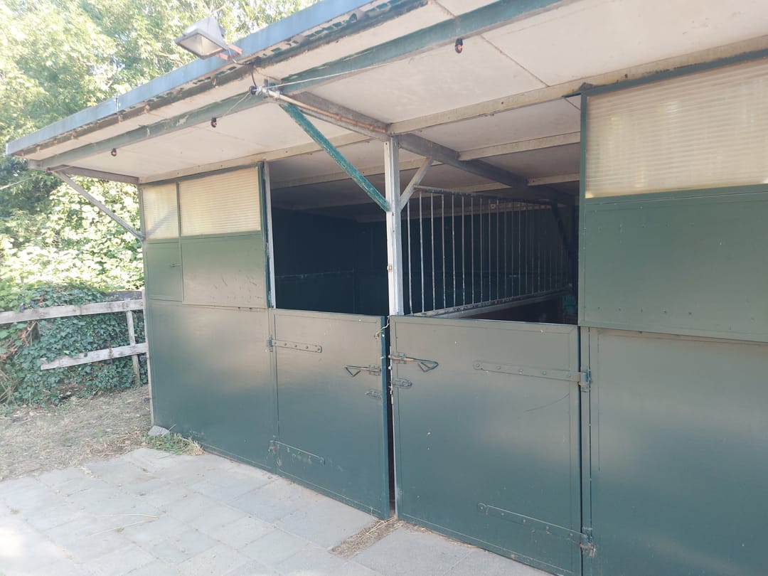De stal is circa 35 m² groot en biedt plaats aan ten minste twee paarden. De ruimte is opgetrokken uit een stalen gegalvaniseerde constructie v.v. kunststof gevelplaten en een geïsoleerd dak v.v. stalen damwandprofielplaten. De naastgelegen ruimte betreft een houten constructie v.v. damwandprofielplaten (gevel en dak). De twee stalruimtes zijn elk voorzien van een drinkbak en een voerbak. Natuurlijk zijn er halve deuren waarover de paarden naar buiten kunnen kijken.