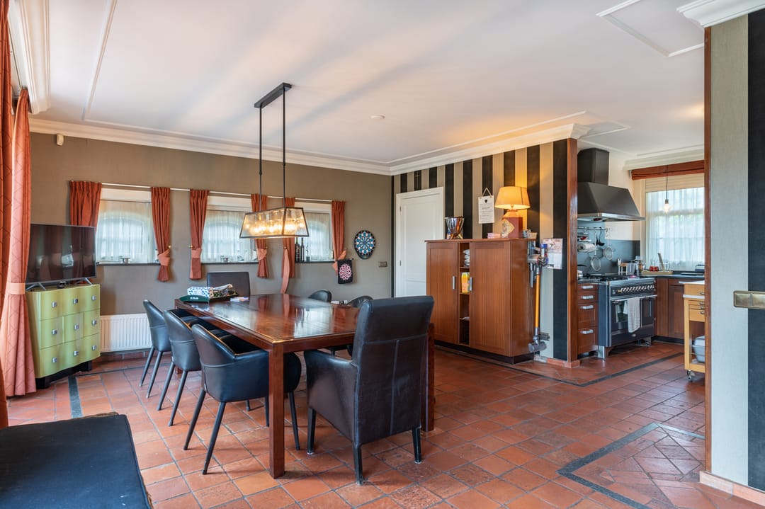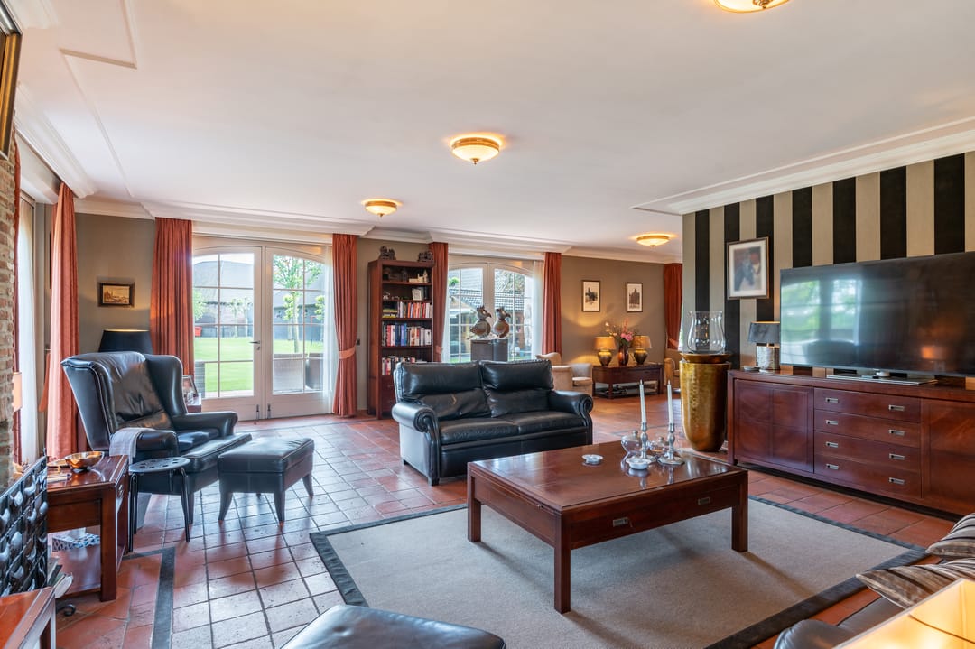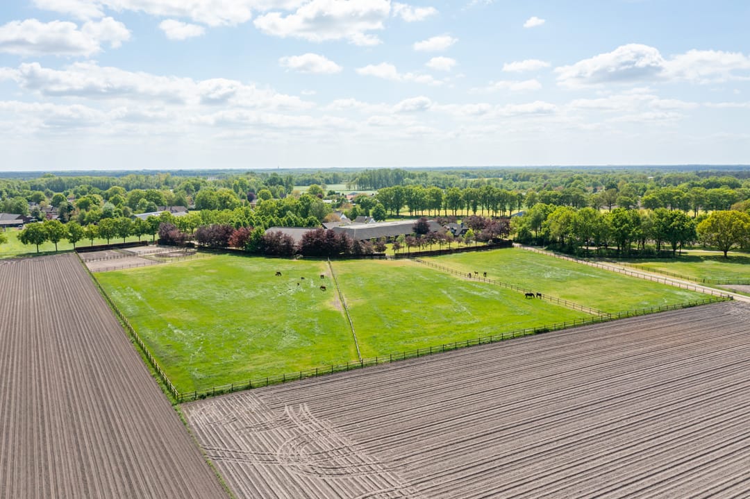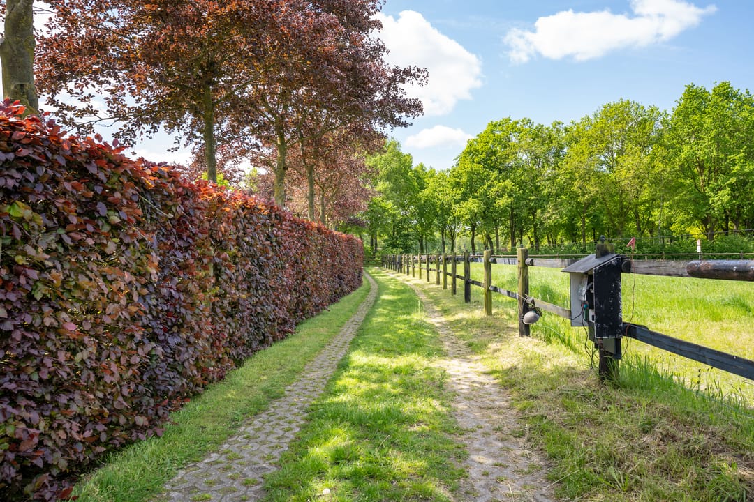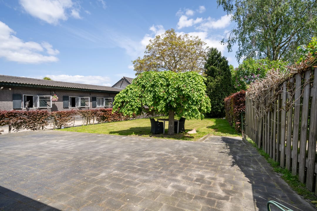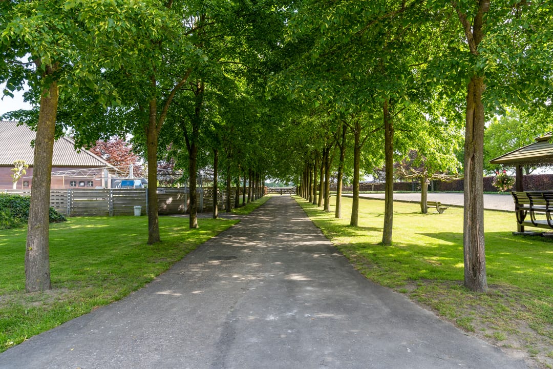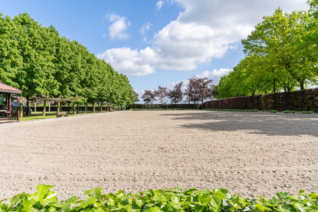 De paardenstal is verder verdeeld in 3 units met in totaal 20 paardenboxen. De geïsoleerde stal is opgetrokken uit metselwerk met stalen spanten en ook hier is het dak met pannen gedekt. Openslaande deuren bieden vanuit alle units toegang tot het erf. Naast 11 paardenboxen zijn in de eerste stalunit nog 4 wasplaatsen, een zadelkamer, een wasruimte en een toiletruimte gesitueerd. De boxen (ca. 4x4 mtr.) zijn voorzien van deels kunststof en deels gegalvaniseerde voorwanden met schuifdeuren en metselwerk tussenwanden. 6 Boxen beschikken over een buitenluik. Stalgedeelte II beschikt over 6 paardenboxen (ca. 4x4 mtr.) met deels kunststof en deels gegalvaniseerde voorwanden met schuifdeuren en betonnen tussenwanden. De unit is verder voorzien van sfeervolle houten gebinten. In het derde stalgedeelte zijn nog 3 boxen aanwezig, welke allen beschikken over een buitenluik. De boxen zijn voorzien van deels kunststof en deels gegalvaniseerde voorwanden met schuifdeuren en betonnen tussenwanden.