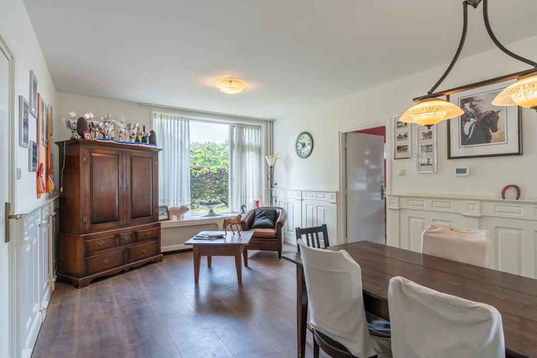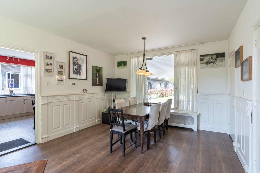 Deze vrijstaande boerderij is bestemd als kantoorruimte en wordt op dit moment gebruikt voor de huisvesting van stagiaires en grooms. Het betreft de voormalige bedrijfswoning en alle leefruimtes zijn in dit object dan ook nog aanwezig. Op de begane grond zijn o.a. een woonkamer, leefkeuken, bijkeuken, 2 slaapkamers, doucheruimte en een portaal gesitueerd. De eerste verdieping in ingericht met een doorloopkamer, een derde slaapkamer en een royale badkamer.