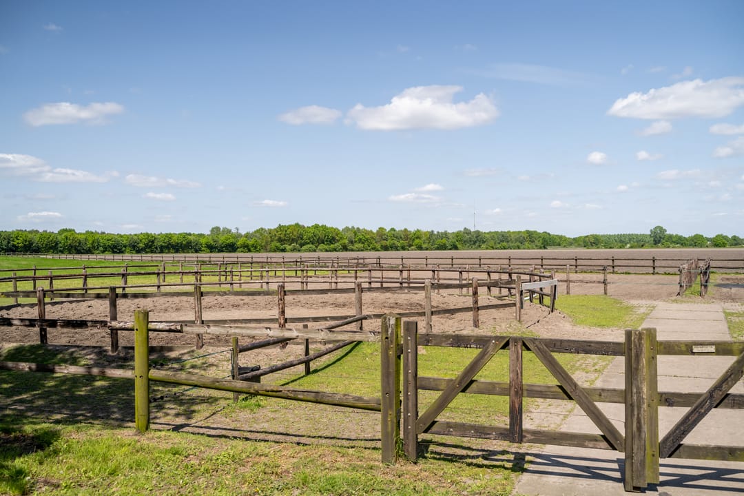Er zijn 3 paddocks aanwezig, welke zijn voorzien van een zandbodem en een houten omheining. De paddocks zijn tevens toegankelijk middels een achteringang van het perceel. De rondom gelegen weilanden zijn eveneens omheind met hout.