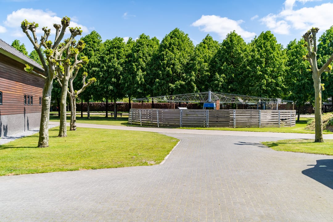 De stapmolen van Liberty naast de stal is geschikt voor 5 paarden. De stapmolen is voorzien van een klinkervloer en een houten omheining.