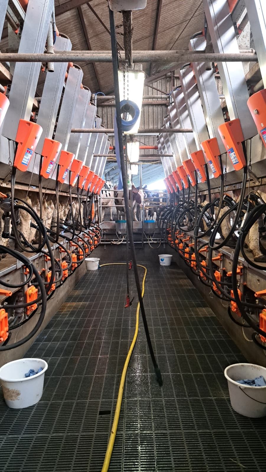 Aan de voorzijde van de ligboxenstal is de melkstal gesitueerd Gascoigne 2 x 12 zij aan zij.