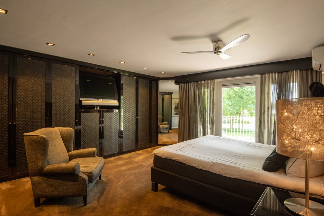 Middels de trap met vide komt u op de overloop, die toegang biedt aan 5 slaapkamers en 2 badkamers. De master bedroom is voorzien van airco, vaste kasten en een groot balkon. De ensuite badkamer beschikt over een douche, wastafelmeubel met dubbele wastafel, een ligbad en een toilet en een openslaande deur naar het balkon. De tweede badkamer is uitgerust met een hoekbad, wastafel en inloopdouche. Daarnaast is een separaat toilet aanwezig.