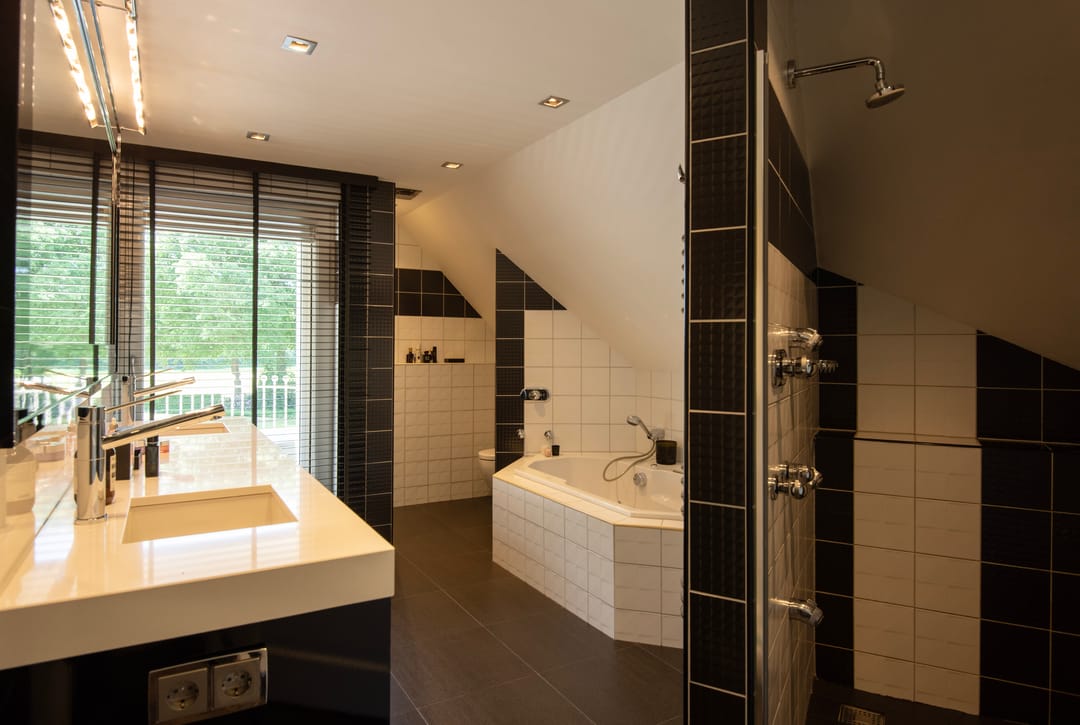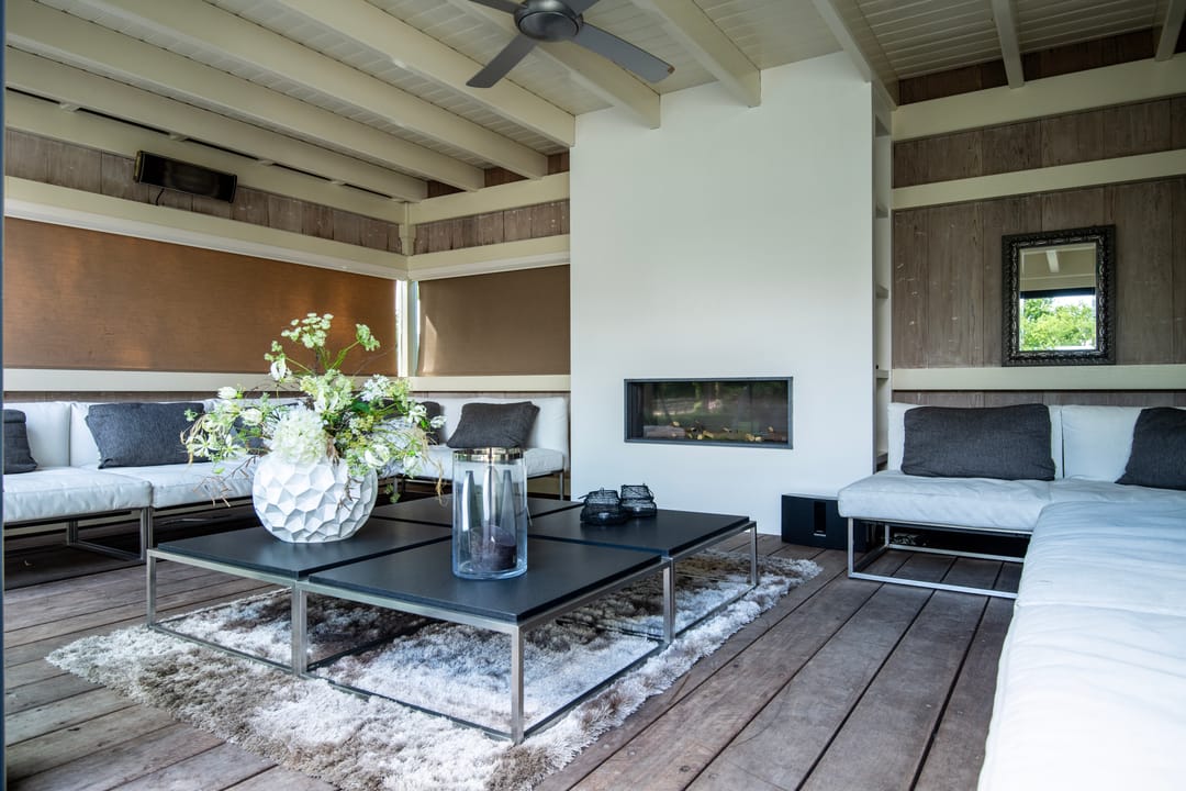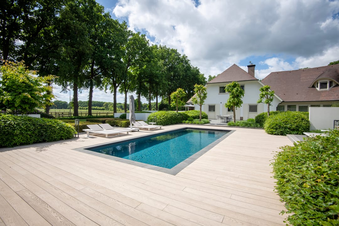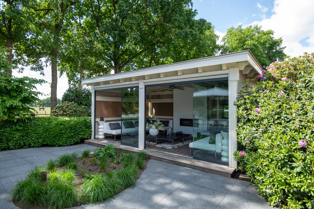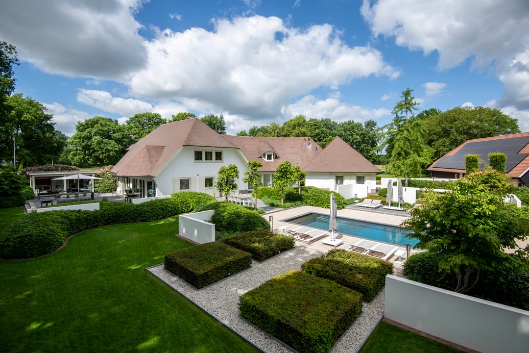 Achter de woning ligt een heerlijk zwembad, omringd door fijne zonneterrassen en een stijlvol tuinhuis, voorzien van een glazen schuifpui en gashaard. Hier is het volop genieten; niet alleen tijdens zomerse dagen, maar het gehele jaar rond!