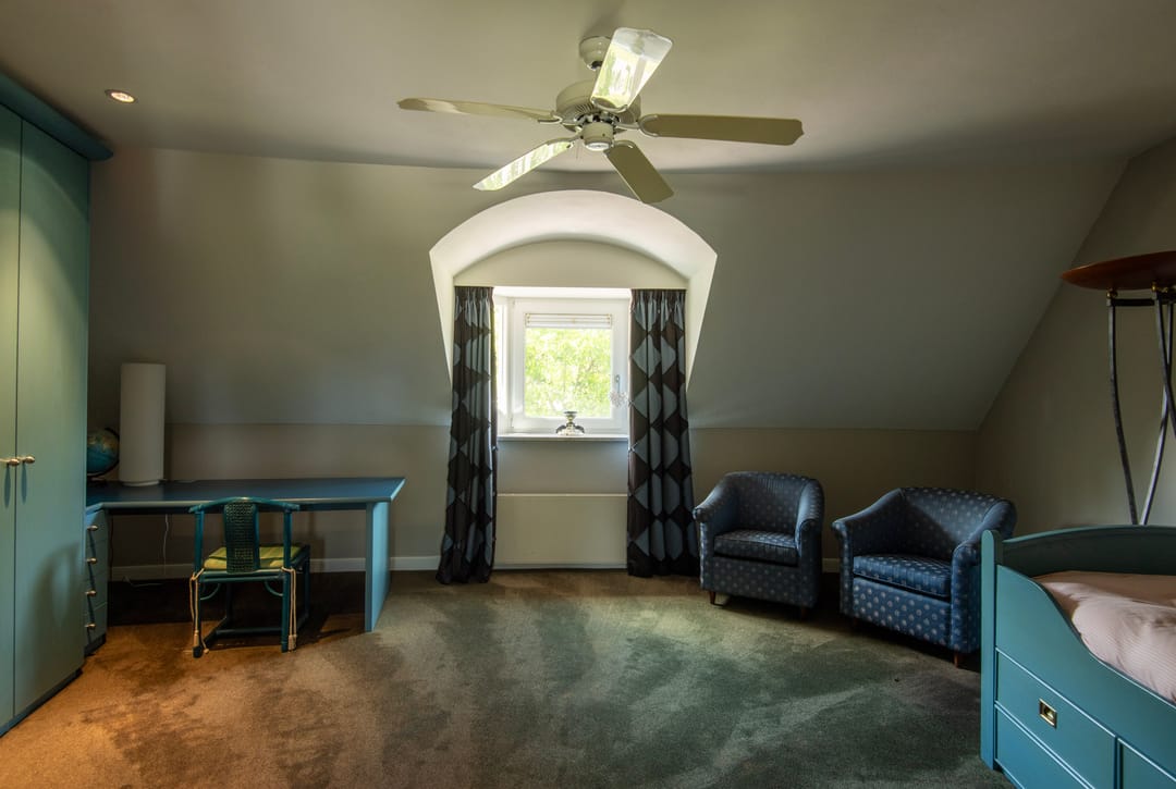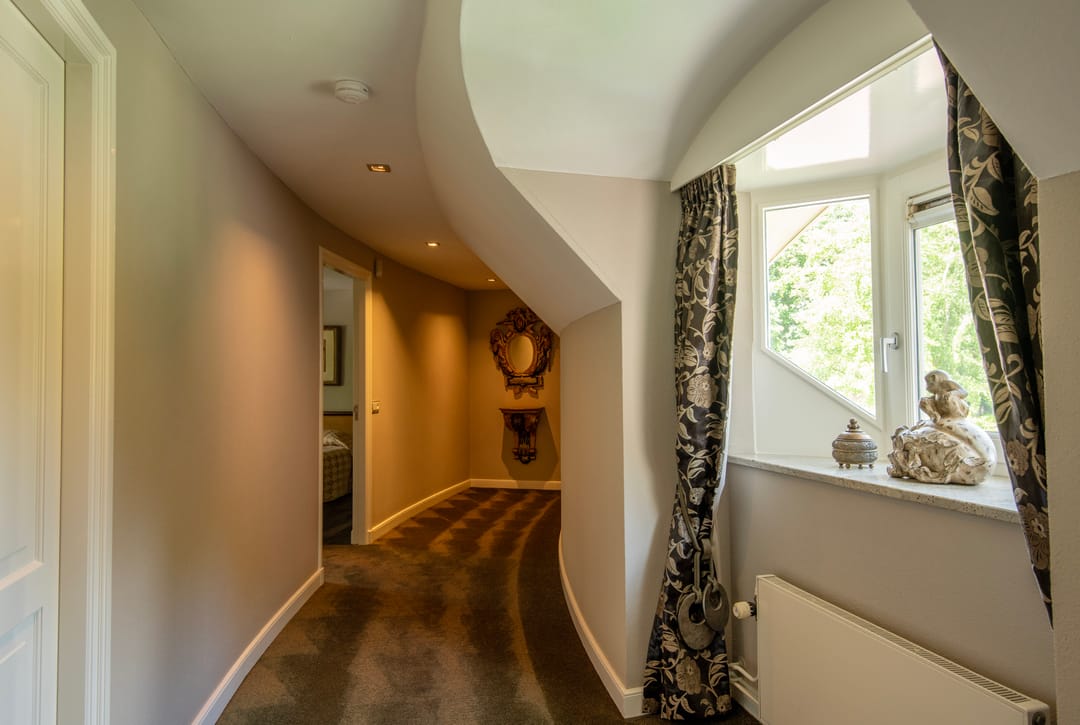 Het rechter gedeelte heeft een eigen opgang vanuit de tweede entreehal. De overloop geeft toegang tot een 6e slaapkamer, bergruimte en de technische ruimte.
