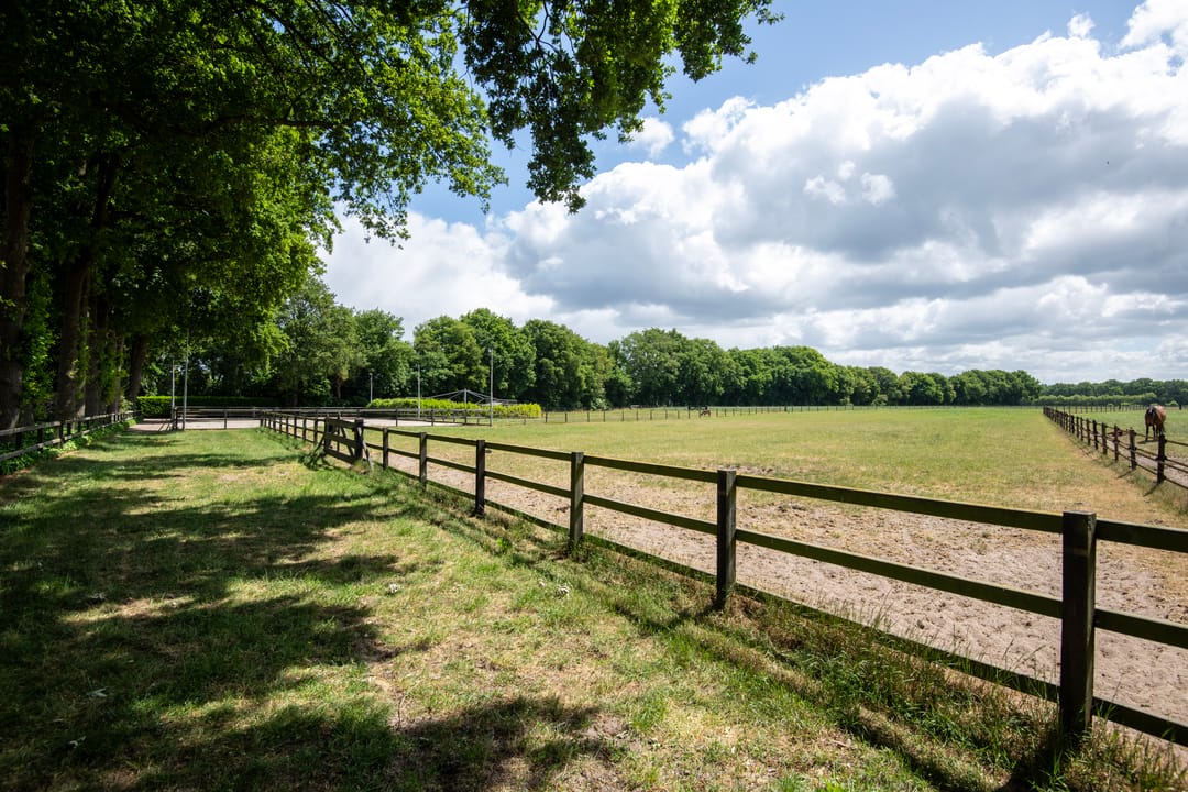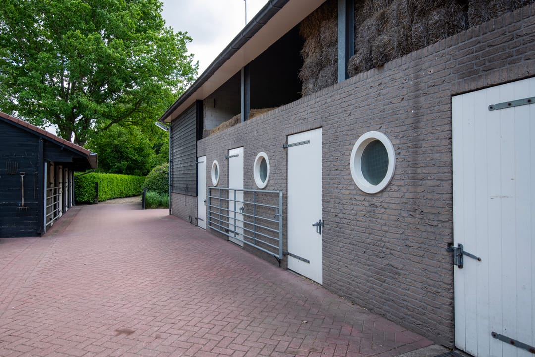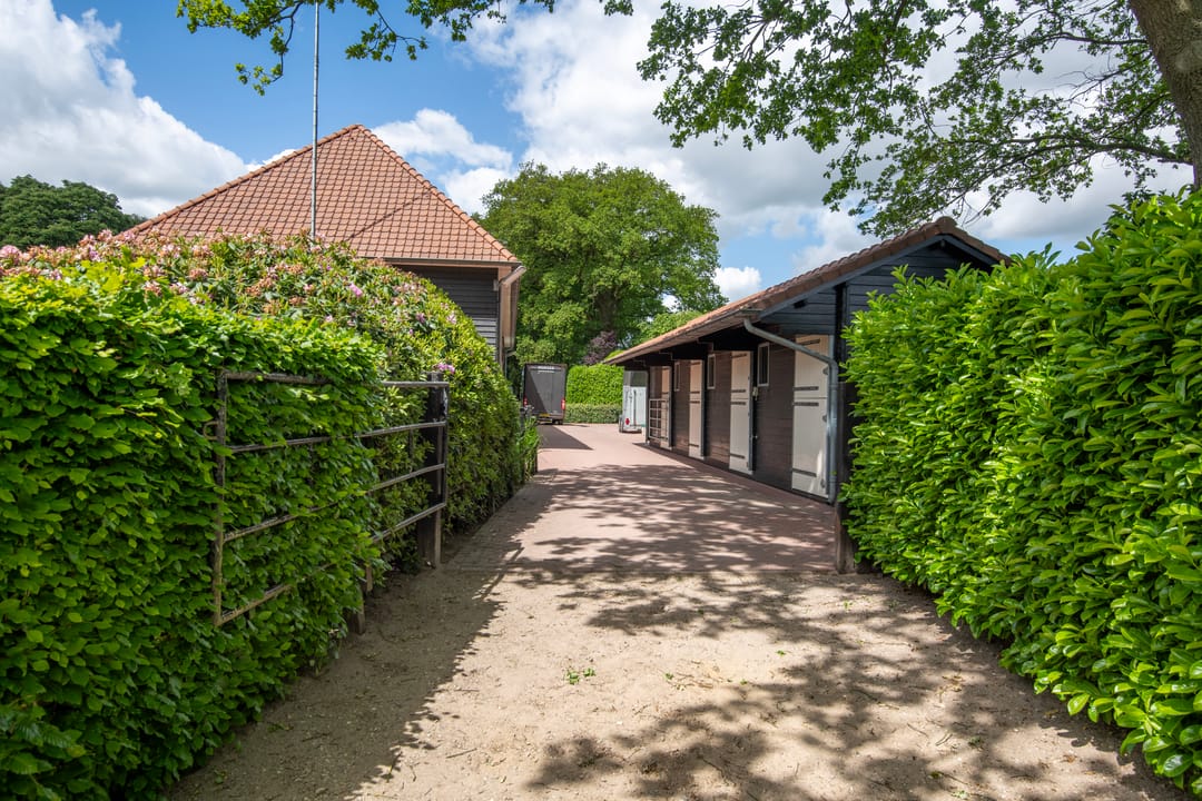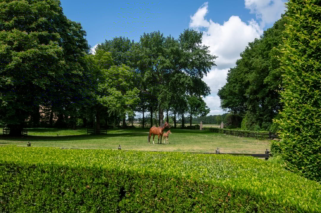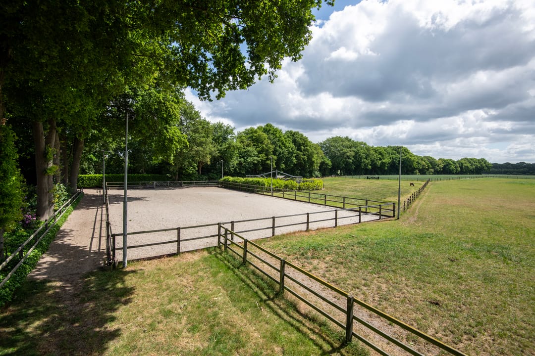 Het geheel wordt omringd door prachtige bos- en houtsingels, weilanden en paardenfaciliteiten zoals mooie stallen, een buitenrijbaan en stapmolen.