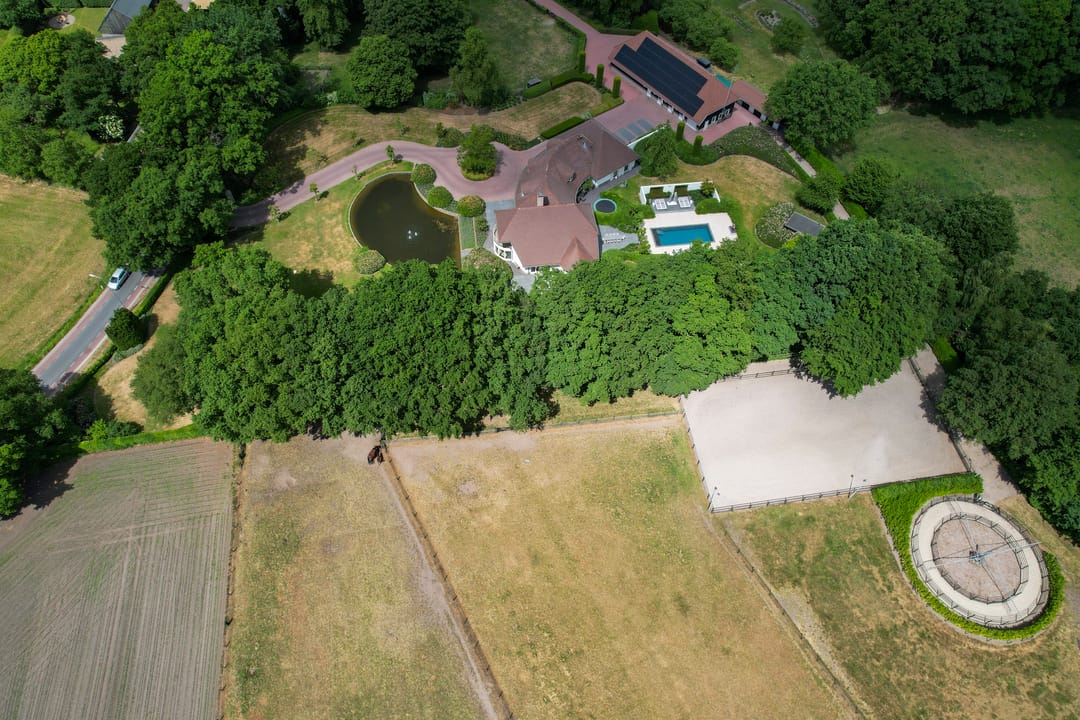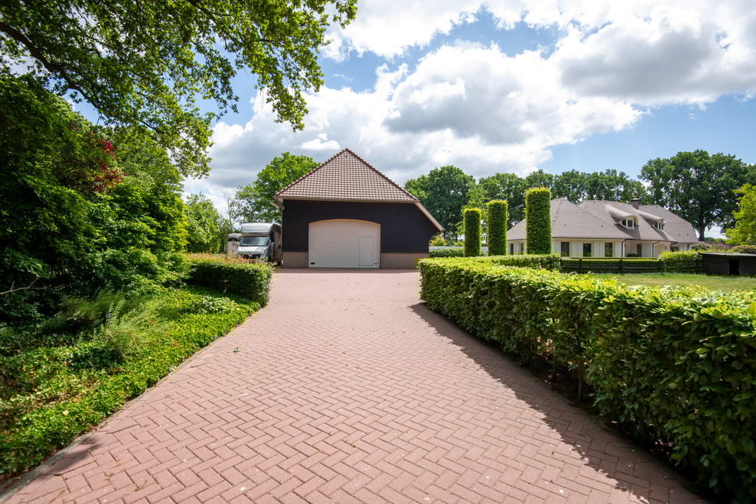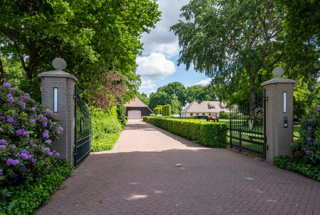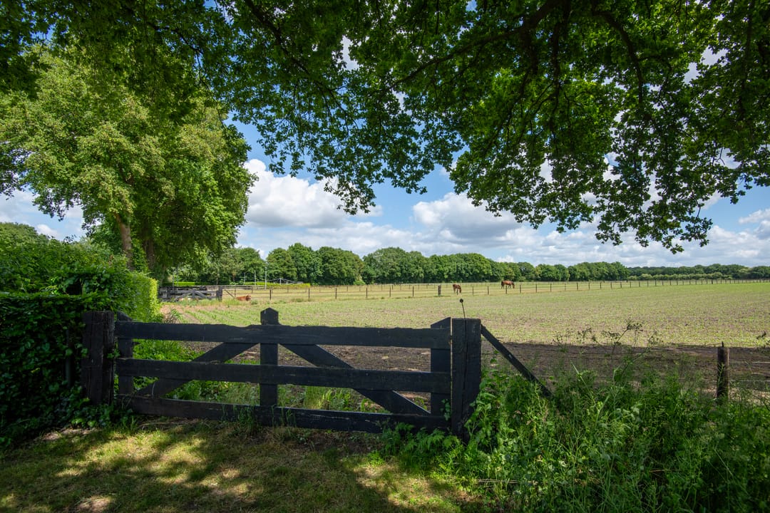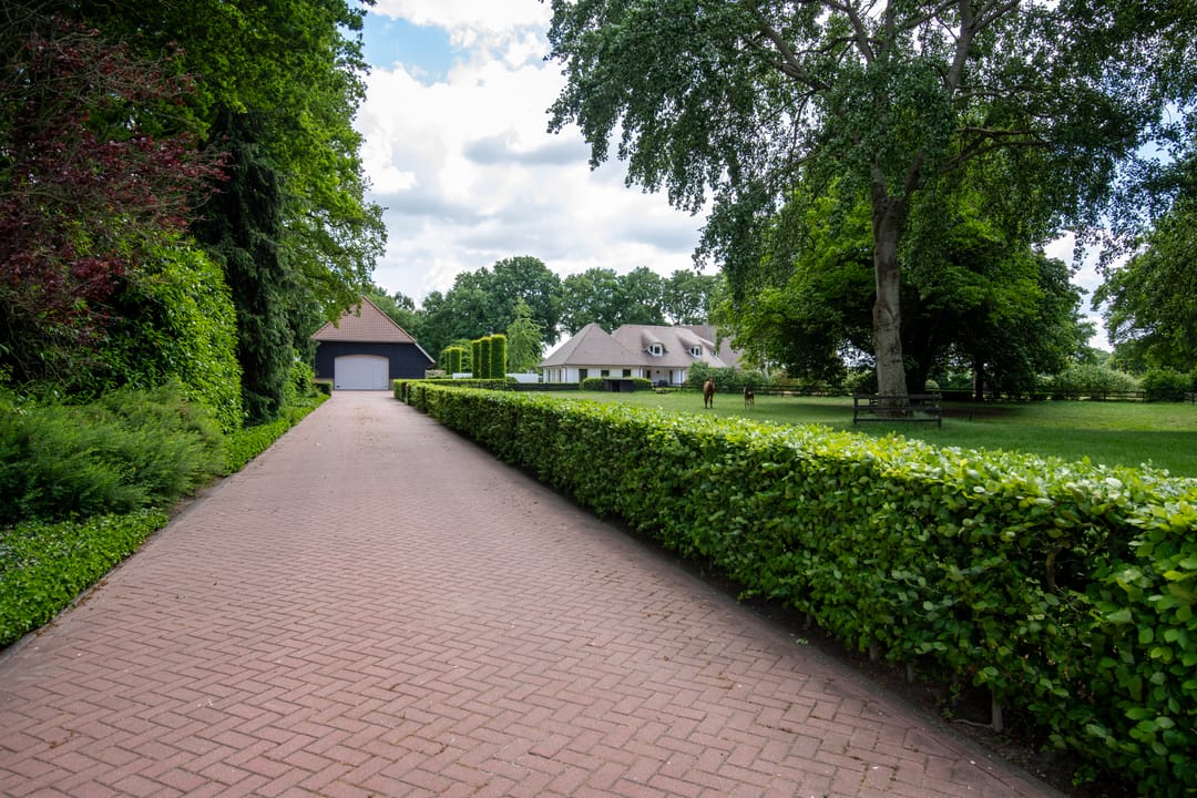 Het geheel wordt omringd door prachtige bos- en houtsingels, weilanden en paardenfaciliteiten zoals mooie stallen, een buitenrijbaan en stapmolen.