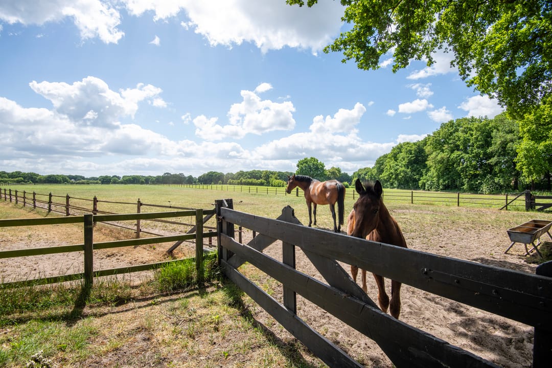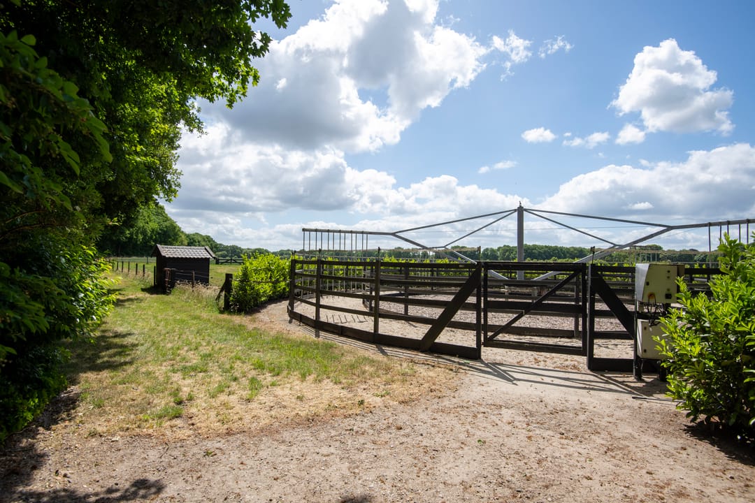 - Weilanden omheind met houten hekwerk en deels breed schriklint;