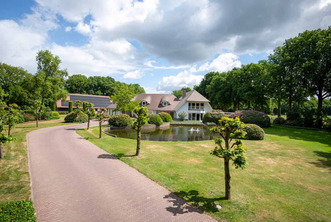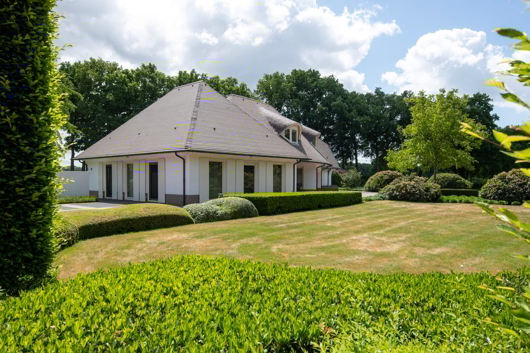 Wat een bijzondere plek wordt u hier aangeboden! Aan het einde van de statige oprijlaan, midden in het groen en omgeven door rust, ruimte en natuur, ligt dit unieke witte LANDHUIS met zijn ronde vormen en woonoppervlakte van maar liefst 470 m², omgeven door een prachtig aangelegde parktuin. Kortom, een echte blikvanger! Het fraai onderhouden terrein kenmerkt zich door zijn royale opzet en organische vormen. De architectuur, gecombineerd met de perfect onderhouden parktuin in Engelse landschapsstijl zorgt voor een harmonieuze samenhang van wonen en natuur. De sierlijke vijverpartij, mooie gazons, de prachtige rododendrons en strakke hagen creëren een sfeer van rust, privacy en exclusiviteit.