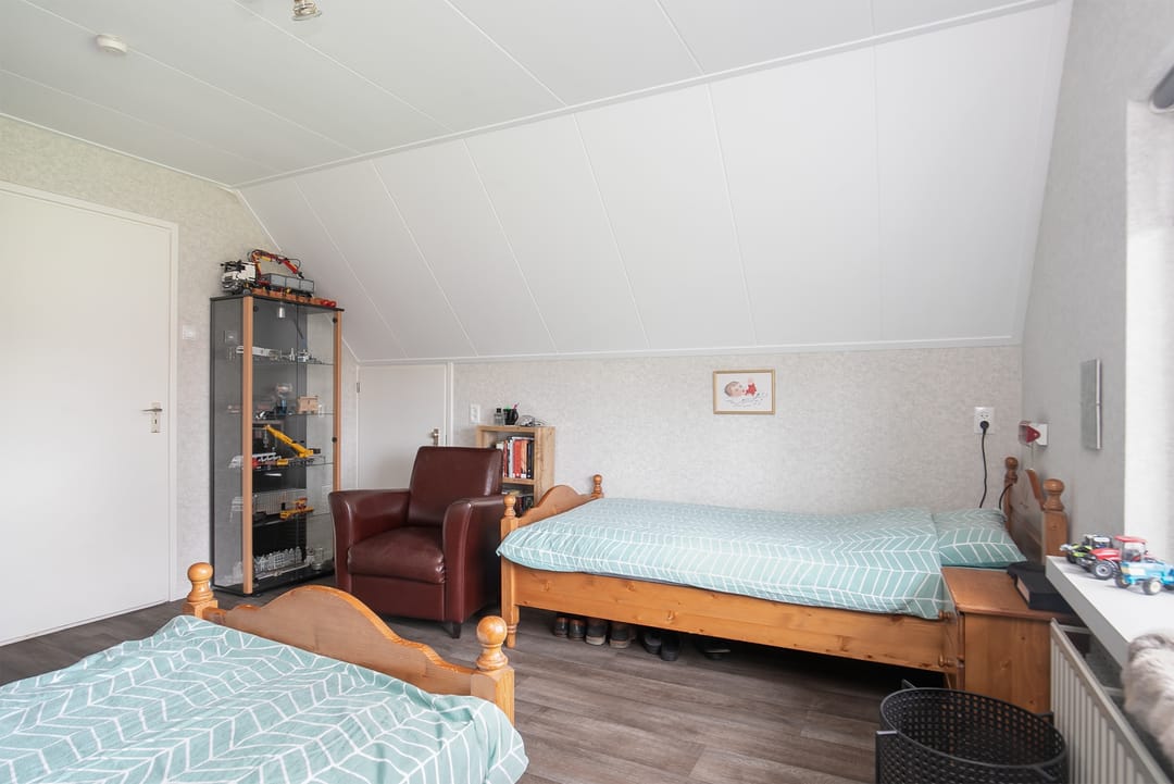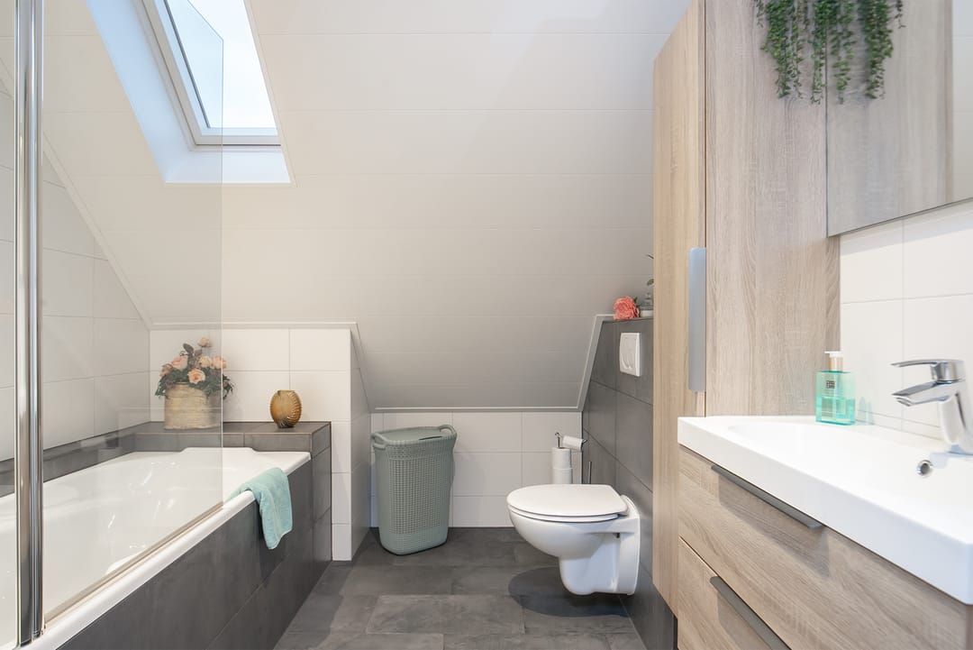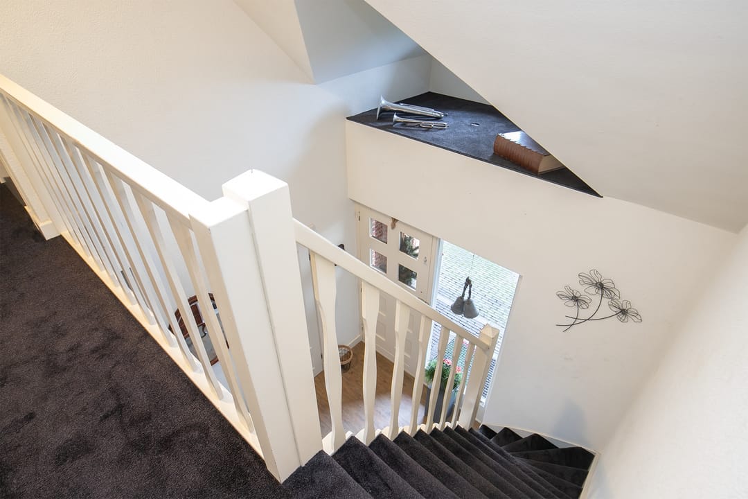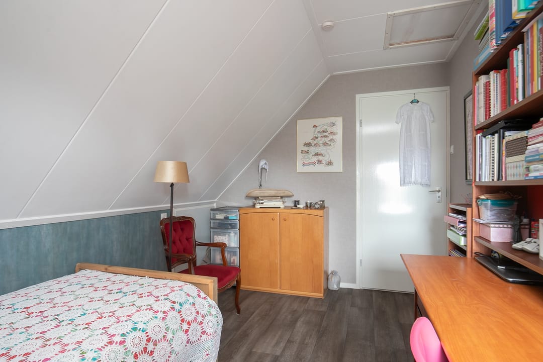 Op de verdieping bevinden zich een overloop, een prachtige open vide, drie slaapkamers, de opstelling voor de CV-ketel en een in 2023 volledig vernieuwde badkamer met (douche in het) bad, badkamermeubel en toilet. In het schuine dak boven het bad is een groot dakraam gecreëerd. De bergzolder is middels een luik bereikbaar.