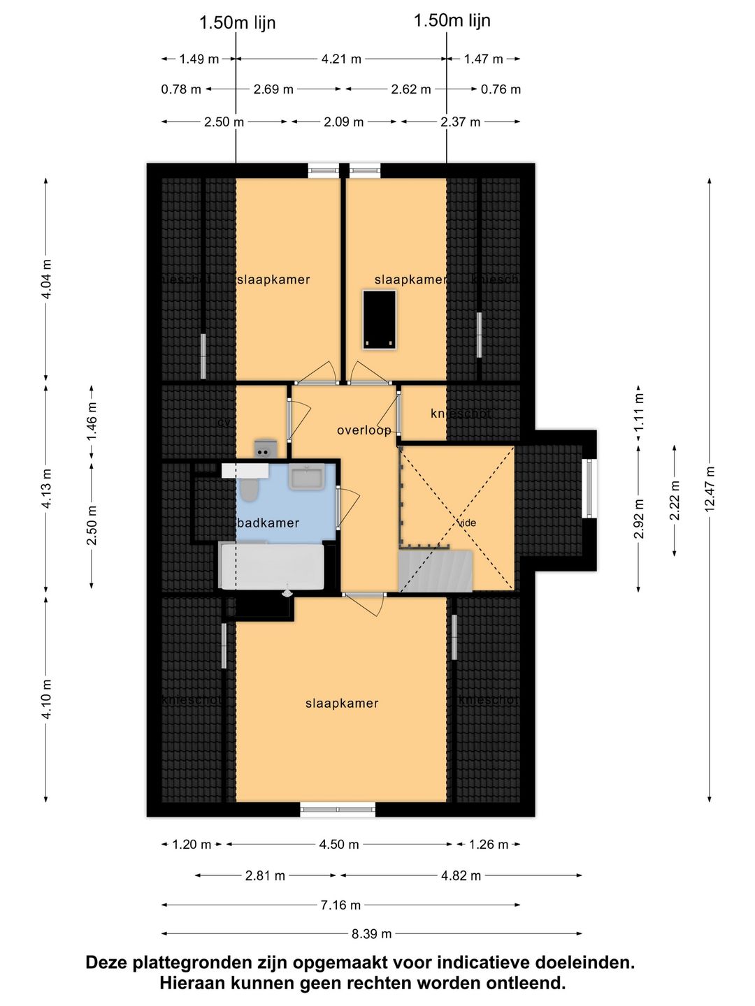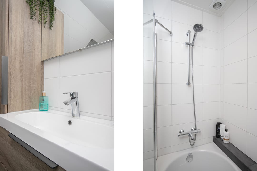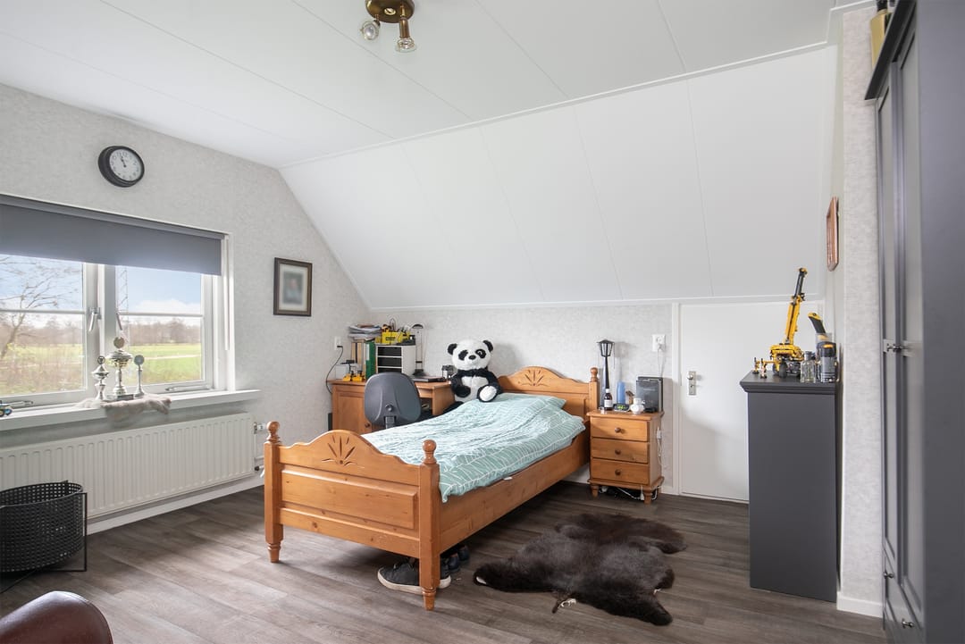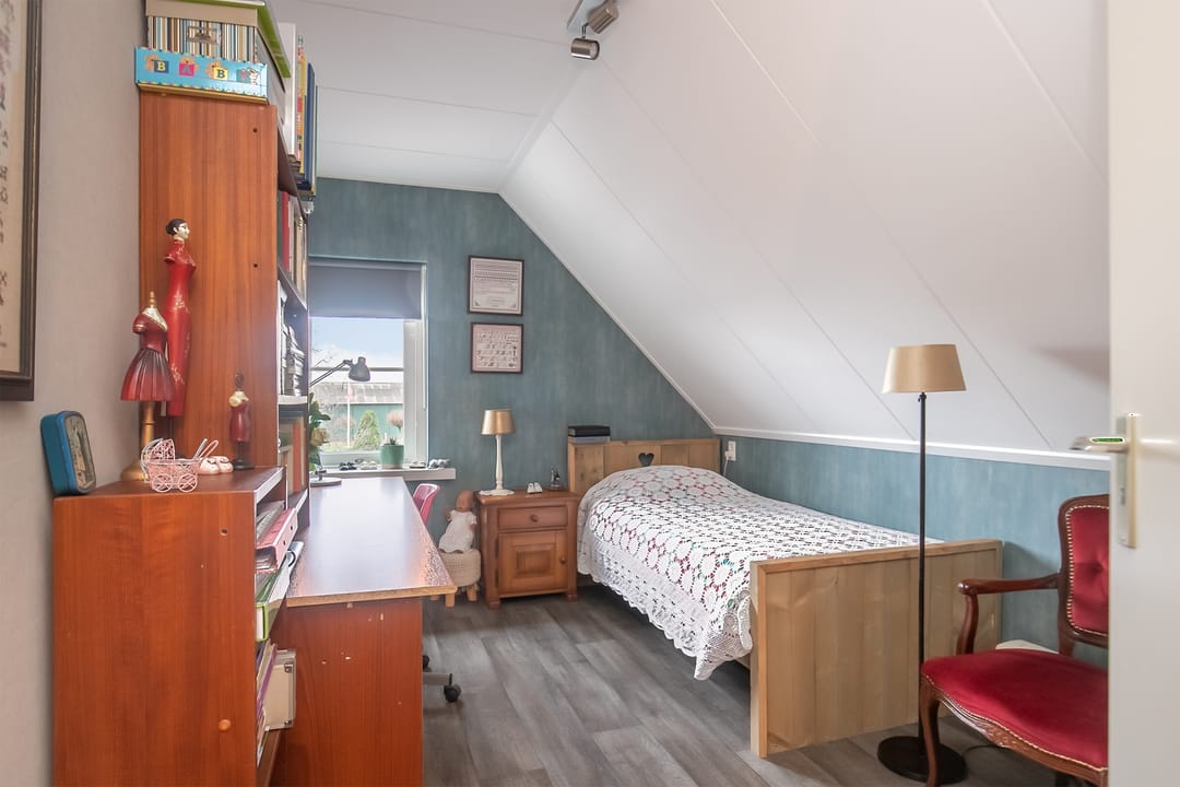 Op de verdieping bevinden zich een overloop, een prachtige open vide, drie slaapkamers, de opstelling voor de CV-ketel en een in 2023 volledig vernieuwde badkamer met (douche in het) bad, badkamermeubel en toilet. In het schuine dak boven het bad is een groot dakraam gecreëerd. De bergzolder is middels een luik bereikbaar.