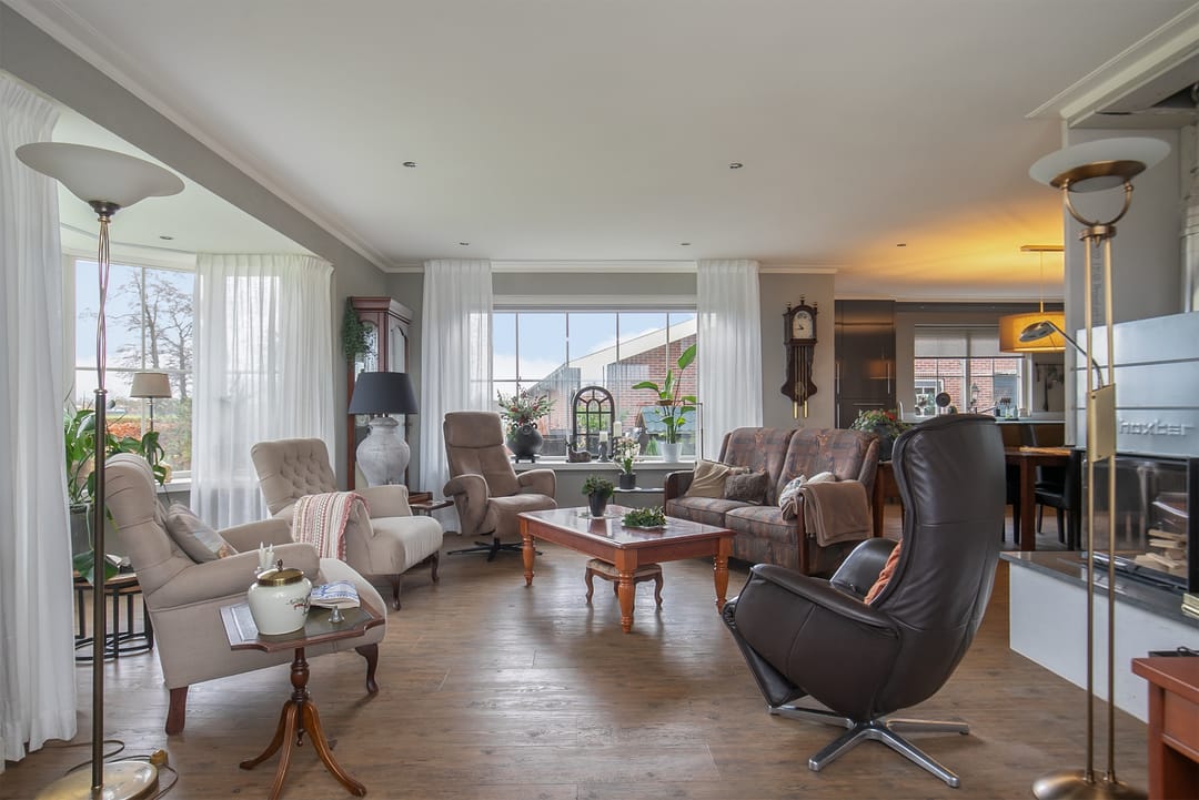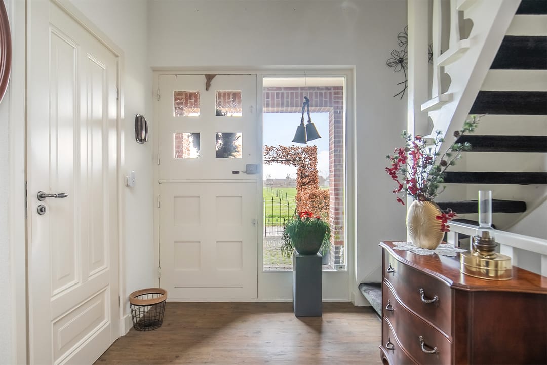 Keurige tweede bedrijfswoning met royale hal op 3.391 m2. De tegenoverliggende cultuurgrond (02.75.20 ha) is optioneel bij te kopen.