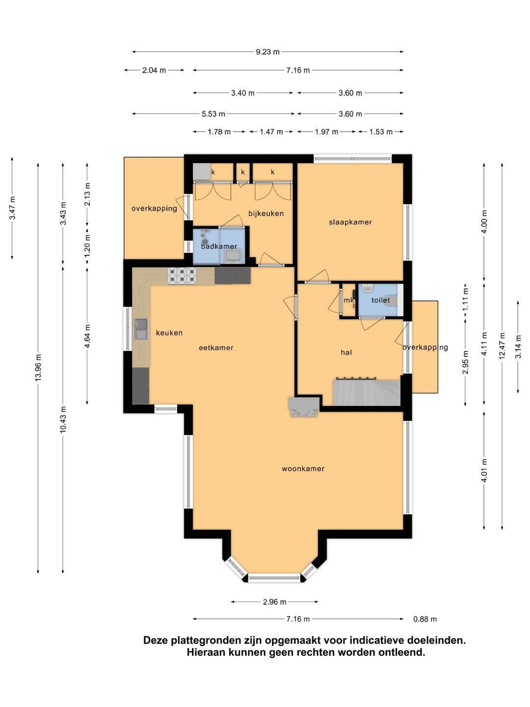 Het bedrijfsmatig houden van dieren is op dit adres niet toegestaan. U deelt het bouwvlak van circa 9.900 m2 en de mogelijkheid van twee bedrijfswoningen met de buren van nummer 10.