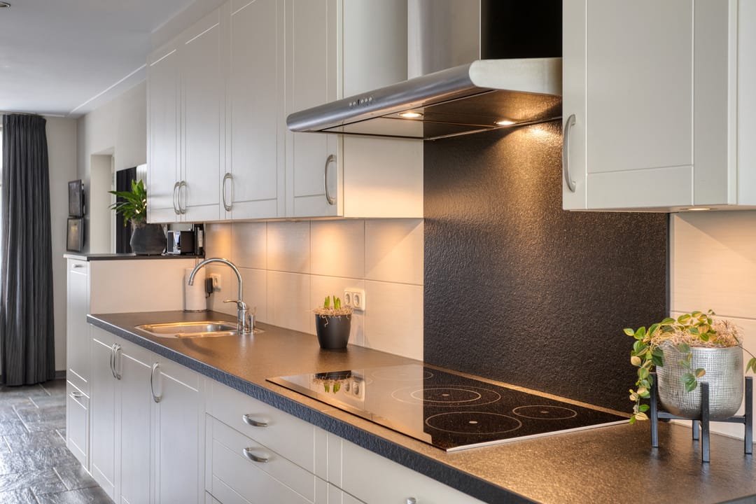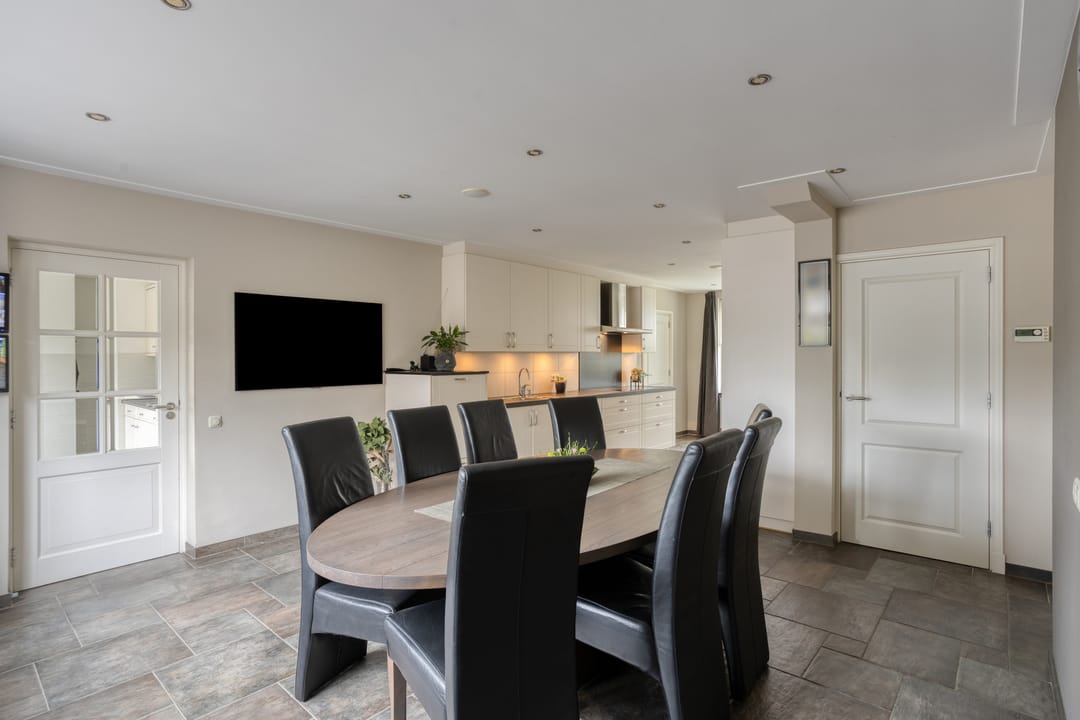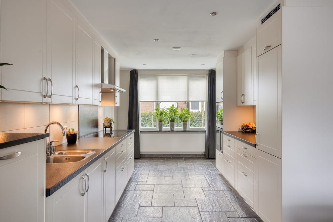 De woonkeuken is geplaatst in een dubbele rechte wandopstelling en is voorzien van een granieten aanrechtblad. De inbouwapparatuur bestaat uit onder andere een inductie kookplaat met afzuiging, magnetron met gril en bakoven, ruime koelkast en vaatwasser op hoogte. Tevens treft u hier een praktische provisieruimte aan en de trapopgang naar de eerste verdieping. Daarnaast bevindt zich in de keuken een airco, welke zorgt voor een behaaglijk klimaat in de zomer en winter.