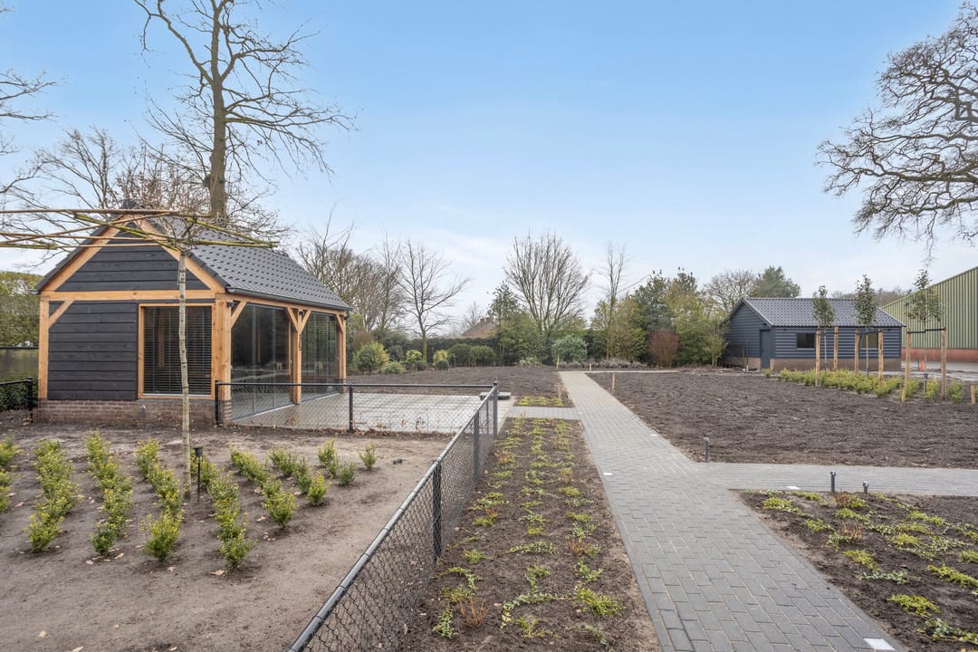 De tuin is eind 2025 aangelegd. Jonge beplanting die nog moet uitgroeien is aanwezig in deze tuin, evenals bestrating tussen de borders en als terras. Tevens is er in de tuin beregening en verlichting aanwezig. De tuin is volledig omheind en bereikbaar via een elektrische toegangspoort.
