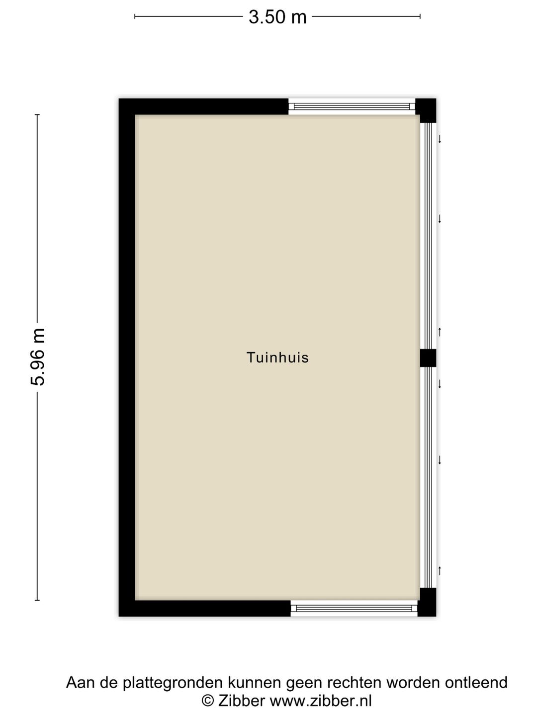 Het tuinhuis (oppervlakte: 5,96 x 3,50 = 21 ² binnenwerks) is gebouwd in 2020 en is opgetrokken uit steen en hout. Het dak is met pannen gedekt. In het tuinhuis is een tegelvloer aanwezig en is via een glazen schuifwand bereikbaar. Daarnaast is het tuinhuis voorzien van zinken goten.