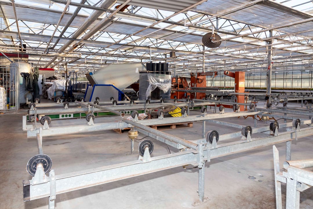 De kas heeft een tralieligger van 6,40 meter, poothoogte van circa 3 meter en een vakmaat van 4 meter.