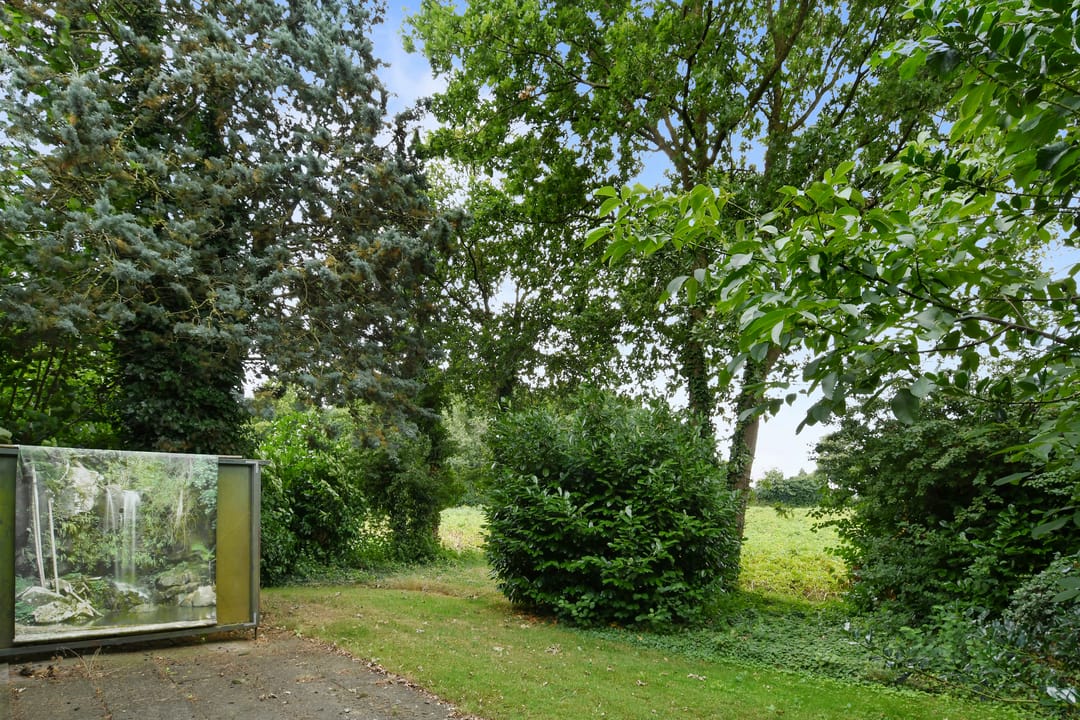 De voortuin en achtertuin zijn voorzien van een royale oprit, haag, gazon, borders en bomen.