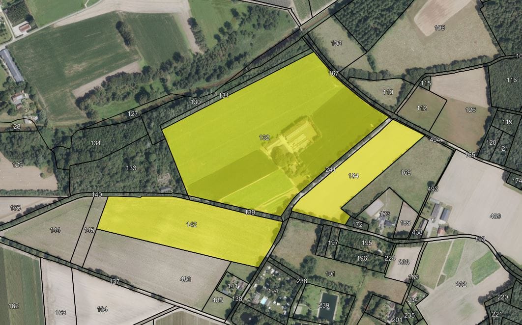Het perceel is kadastraal bekend als gemeente Hunsel, sectie K, nummers 132, 142 en 184, ter grootte van