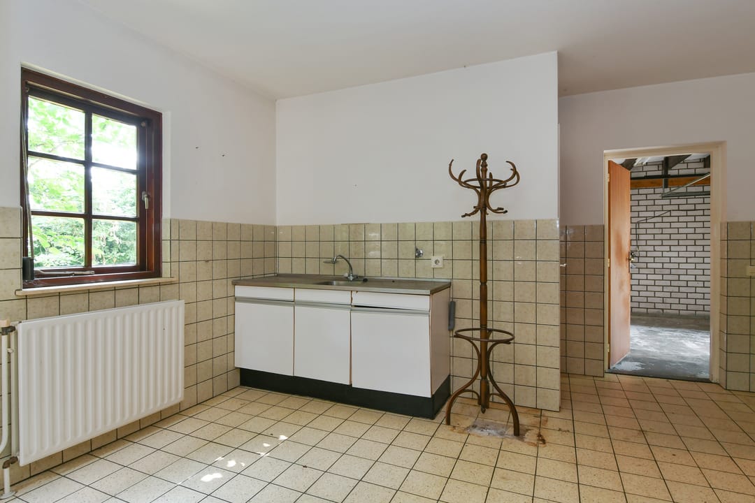 Vanuit de keuken is de bijkeuken toegankelijk waar zich de toiletruimte en badkamer bevinden. De bijkeuken is voorzien van deels betegelde en deels gestucte wanden, gestuct plafond en tegelvloer. Vanuit de bijkeuken is de provisiekelder toegankelijk.