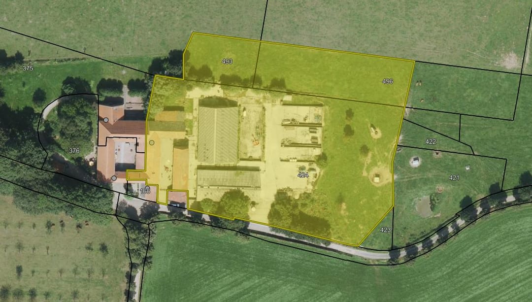 Het perceel is kadastraal bekend als gemeente Margraten, sectie X, nummers 424 gedl., 493 en 496 gedl.,